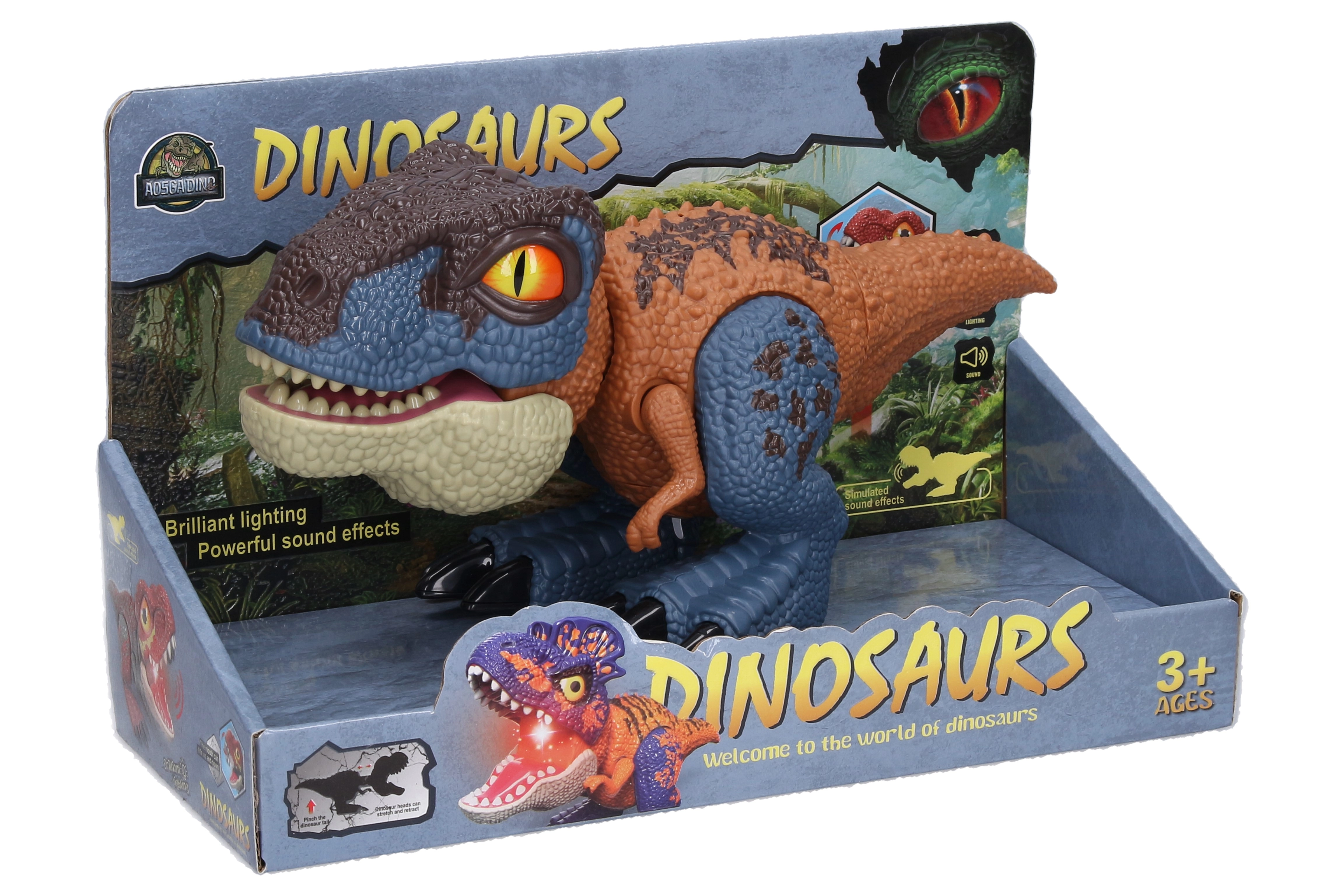 Odkryj zabawnego, brązowego dinozaura z realistycznymi efektami świetlnymi i dźwiękowymi, który zachwyci każdego małego poszukiwacza przygód. Po naciśnięciu przycisku wysuwa się głowa i otwiera paszcza z efektami świetlnymi i dźwiękowymi. Do tego ruchome kończyny, ogon oraz ręcznie otwierana paszcza. Baterie 3× AG13 są częścią zestawu.
