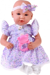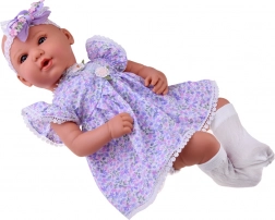 Interaktywna lalka-bobas jest ubrana w urokliwą liliową sukienkę z koronką i dopasowaną opaską. Realistycznie ukształtowana buźka, długie „rzęski” i miły wyraz twarzy wspierają empatyczną zabawę i rozwój wyobraźni. Miękki brzuszek oraz solidne plastikowe rączki i nóżki zapewniają wygodne noszenie i trwałość podczas codziennej zabawy.