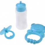 W zestawie znajduje się butelka, smoczek i misiowa grzechotka. Akcesoria są lekkie, łatwe do chwytania i doskonale pasują do ubranka.