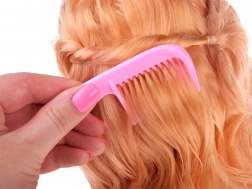 Miękkie, falowane blond włosy idealnie nadają się do czesania, zaplatania i ozdabiania kolorowymi spinkami.