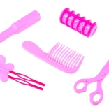 Grzebień, nożyczki do zabawy, wałek, dziecięca prostownica i klipsy pozwalają trenować różne techniki i tworzyć oryginalne style.