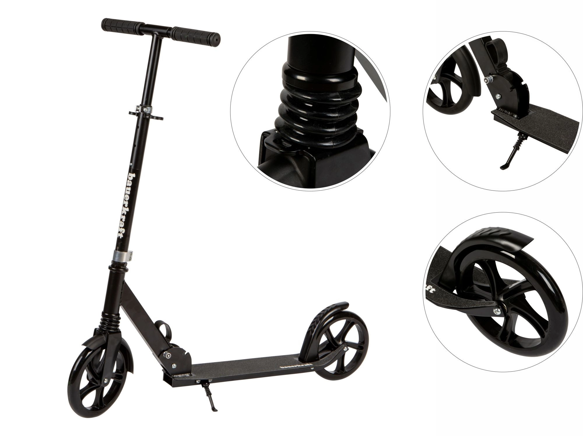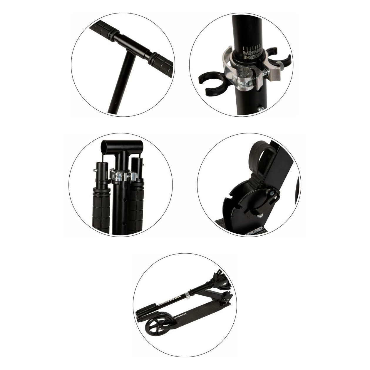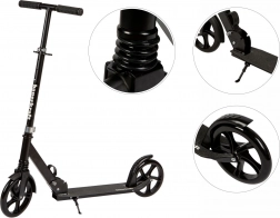Lekka i wytrzymała miejska hulajnoga dla dzieci i nastolatków z łatwym składaniem, regulowaną wysokością 95–105 cm, dużymi kółkami 200 mm z łożyskami ABEC-7 oraz przednim amortyzatorem. Oferuje antypoślizgowy podest, tylny hamulec nożny i stopkę do wygodnego parkowania. Maksymalne obciążenie 80 kg.