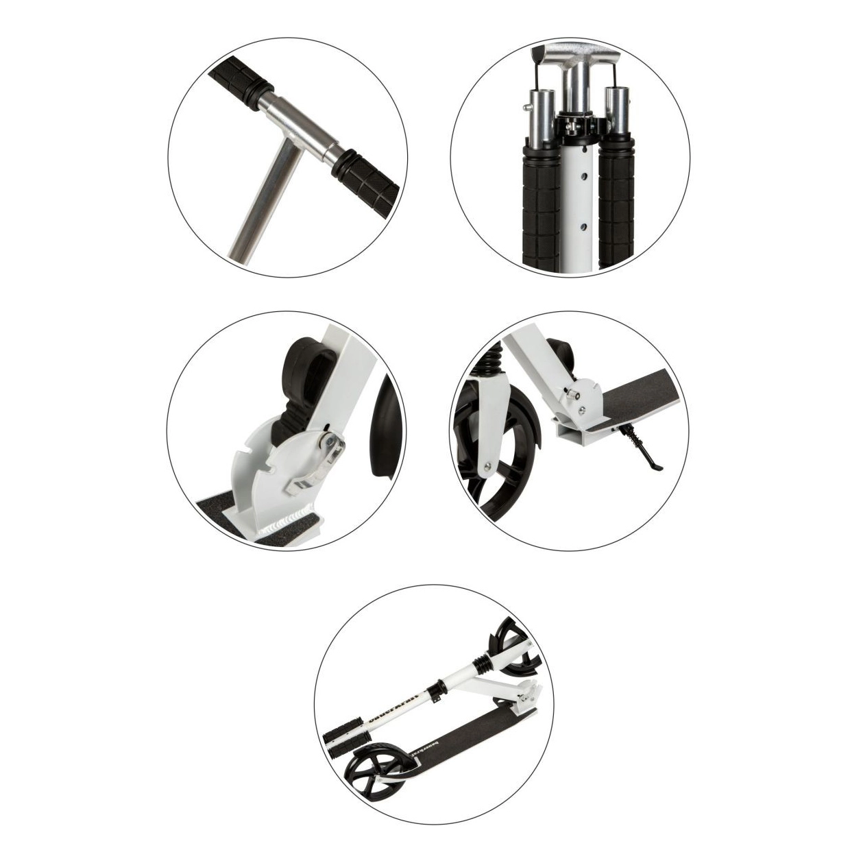 Podróżuj do szkoły i po mieście wygodnie i stylowo. Dzięki przedniemu sprężynowemu amortyzatorowi oraz dużym kołom 200 mm hulajnoga gładko pokonuje asfalt, chodniki i ścieżki rowerowe. Lekka aluminiowa rama łatwo się przenosi, a szybki mechanizm składania umożliwia kompaktowe przechowywanie w domu, w szkole i w samochodzie.