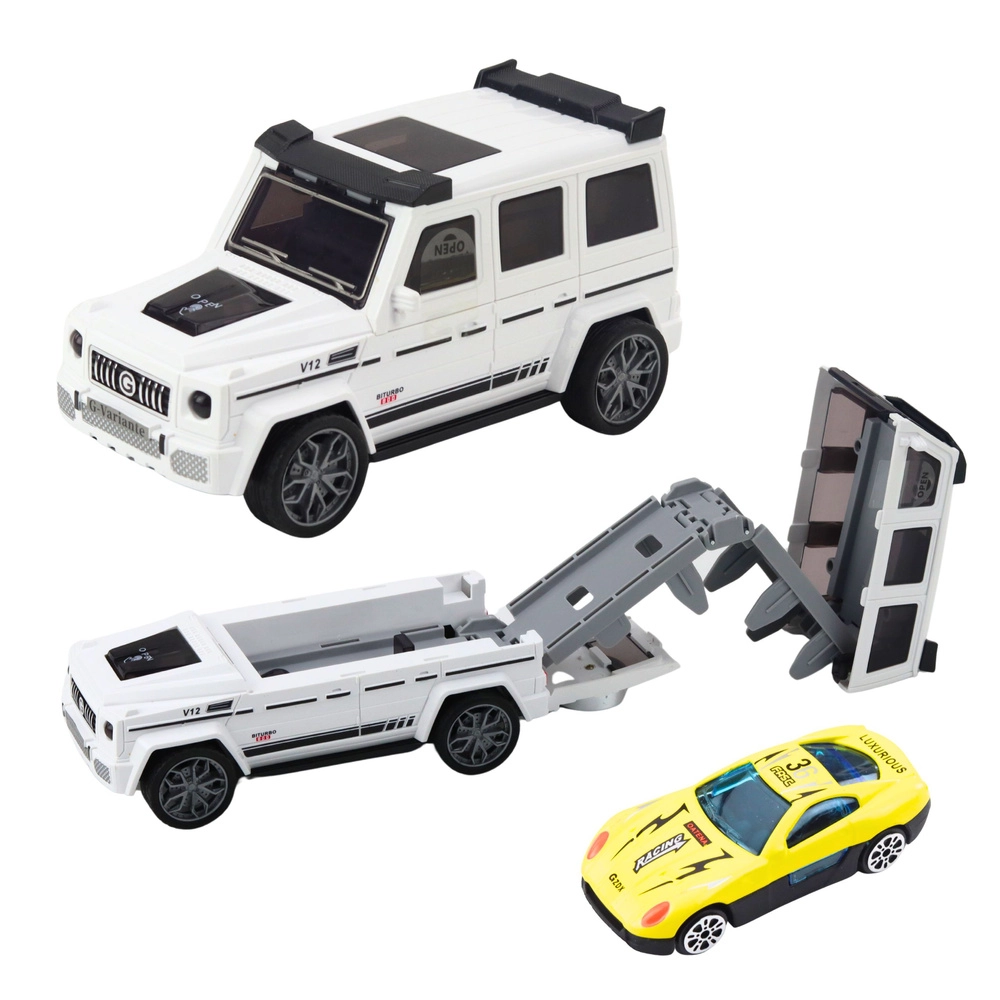 - samochód terenowy (biały lub niebieski), małe autko (w środku), oryginalne opakowanie zbiorcze (6 szt. – sprzedaż na 1 szt.)