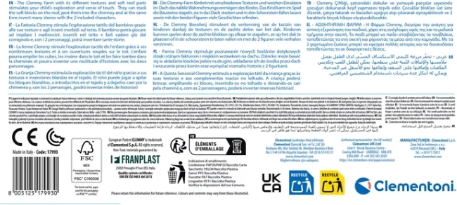 Odkryj zestaw do zabawy dla najmłodszych: sensoryczną farmę CLEMENTONI Clemmy z miękkimi klockami, funkcjami mechanicznymi i dwiema uroczymi postaciami. Dzieci mogą wrzucać klocki przez okna i dach, badać różne faktury, obracać wiatraczkiem oraz ćwiczyć motorykę małą i myślenie logiczne. Idealne dla wieku 6–36 miesięcy, bez konieczności użycia baterii.