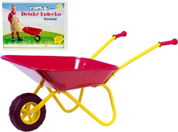 Wytrzymała dziecięca taczka Yupee dla małych ogrodników idealnie sprawdzi się na piaskownicy i w ogrodzie. Ma solidną metalową konstrukcję, plastikowe uchwyty dla wygodnego trzymania oraz zaokrąglone krawędzie skrzyni dla bezpieczniejszej zabawy.