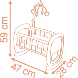 Stylowa dziecięca kołyska dla lalek Baby Nurse zapewnia spokojne usypianie i wygodny sen w jednym. Delikatne kołysanie uspokaja, a ręcznie obracana karuzela nad łóżeczkiem wspiera wyciszające rytuały przed snem. Idealna do rozwoju empatii i umiejętności opiekuńczych podczas zabawy.