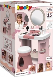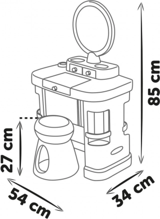 Toaletka My Beauty Dressing Table zachwyca delikatnym designem i stonowanymi kolorami, które pięknie pasują do każdego pokoju dziecięcego. Dzieci mogą bezpiecznie odgrywać scenki pielęgnacji włosów, paznokci i makijażu dzięki przemyślanemu układowi z uchylnym okrągłym lustrem, półeczkami i zamykanymi schowkami.
