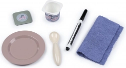 - Bogate akcesoria – talerzyk, łyżeczka, jogurt, pisak i ściereczka.