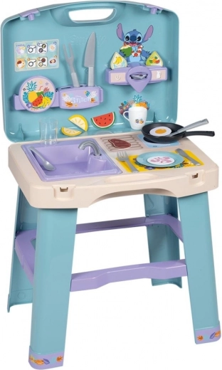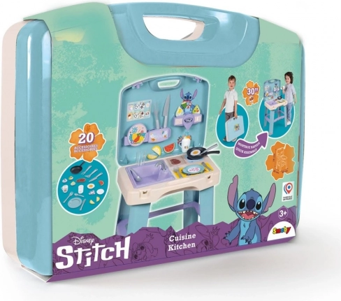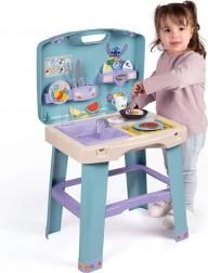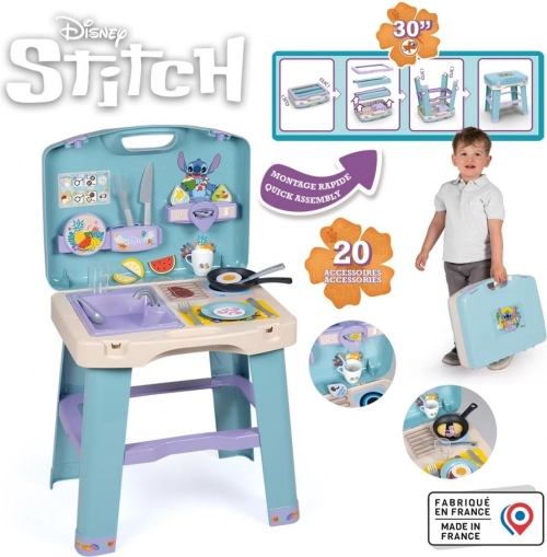 Ta kuchnia dla dzieci zmienia się z walizki w pełnoprawne studio kuchenne w kilku prostych krokach – wystarczy ją rozłożyć, założyć nóżki i można zaczynać gotowanie. Wesoły motyw DISNEY STITCH pobudza wyobraźnię i zabawę w odgrywanie ról, dzięki czemu dzieci spędzą długie godziny na wciągającej zabawie.