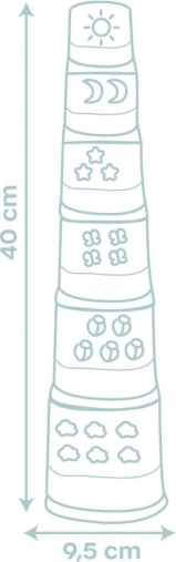 Kolorowa wieża do układania LITTLE SMOBY oferuje dzieciom godziny odkrywania i zabawy. 6 kolorowych kubeczków można wkładać jeden w drugi lub ustawiać jeden na drugim, a w wannie obserwować przepływ wody przez otwory. Zabawa naturalnie rozwija małą motorykę, koordynację ręka–oko, rozpoznawanie kształtów i kolorów oraz myślenie logiczne.