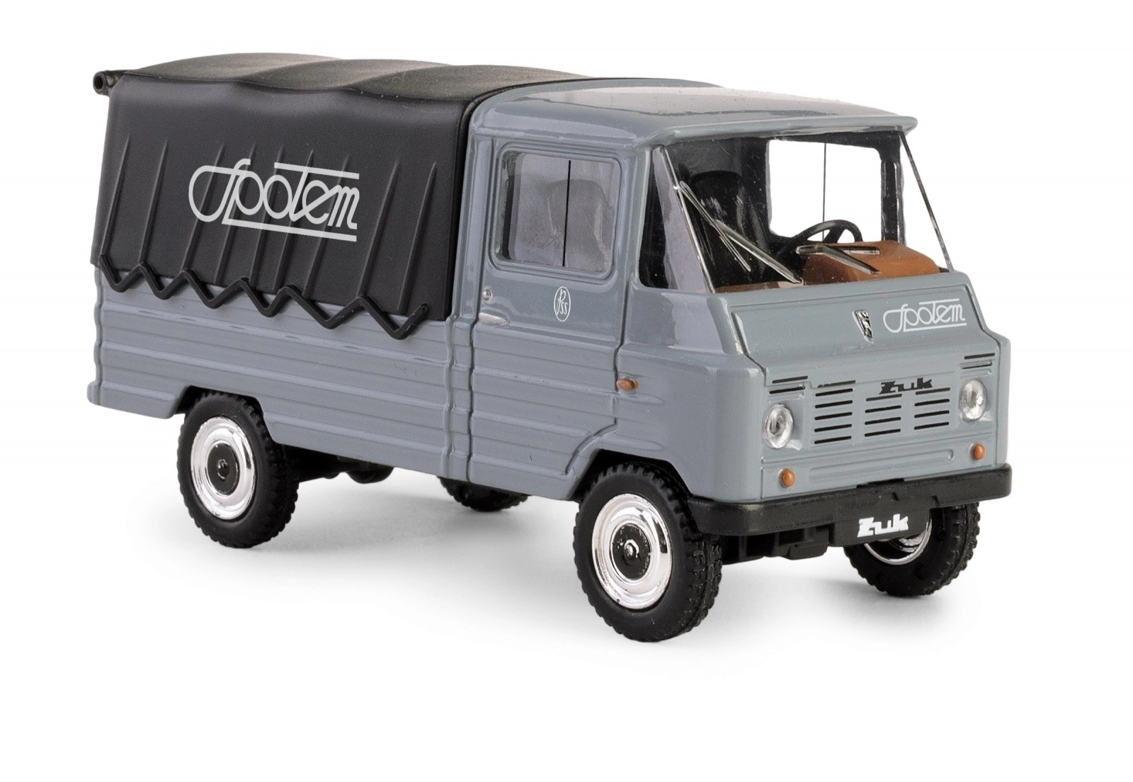 FSC Żuk, legendarny polski samochód użytkowy rozwijany od 1956 roku na bazie FSO Warszawa, należy do ikonicznych pojazdów Europy Środkowej i Wschodniej. Ten precyzyjnie wykonany model w wersji Społem oferuje autentyczne proporcje i wierne detale, które ucieszą każdego kolekcjonera.