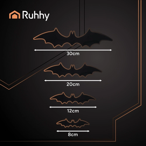 Stylowa dekoracja na Halloween, imprezy tematyczne i fotokąciki. Zestaw zawiera nietoperze w 4 rozmiarach, które łatwo połączysz w rój lub efekt „startu do lotu”. Dzięki niskiej wadze i dołączonej taśmie montaż jest szybki i łagodny dla powierzchni.