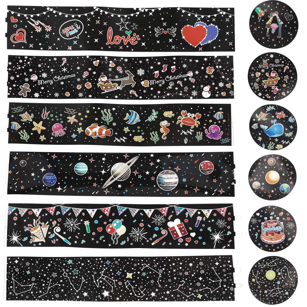konstelacje, planety, podwodny świat, urodziny, Boże Narodzenie, Walentynki (6 wymiennych folii)