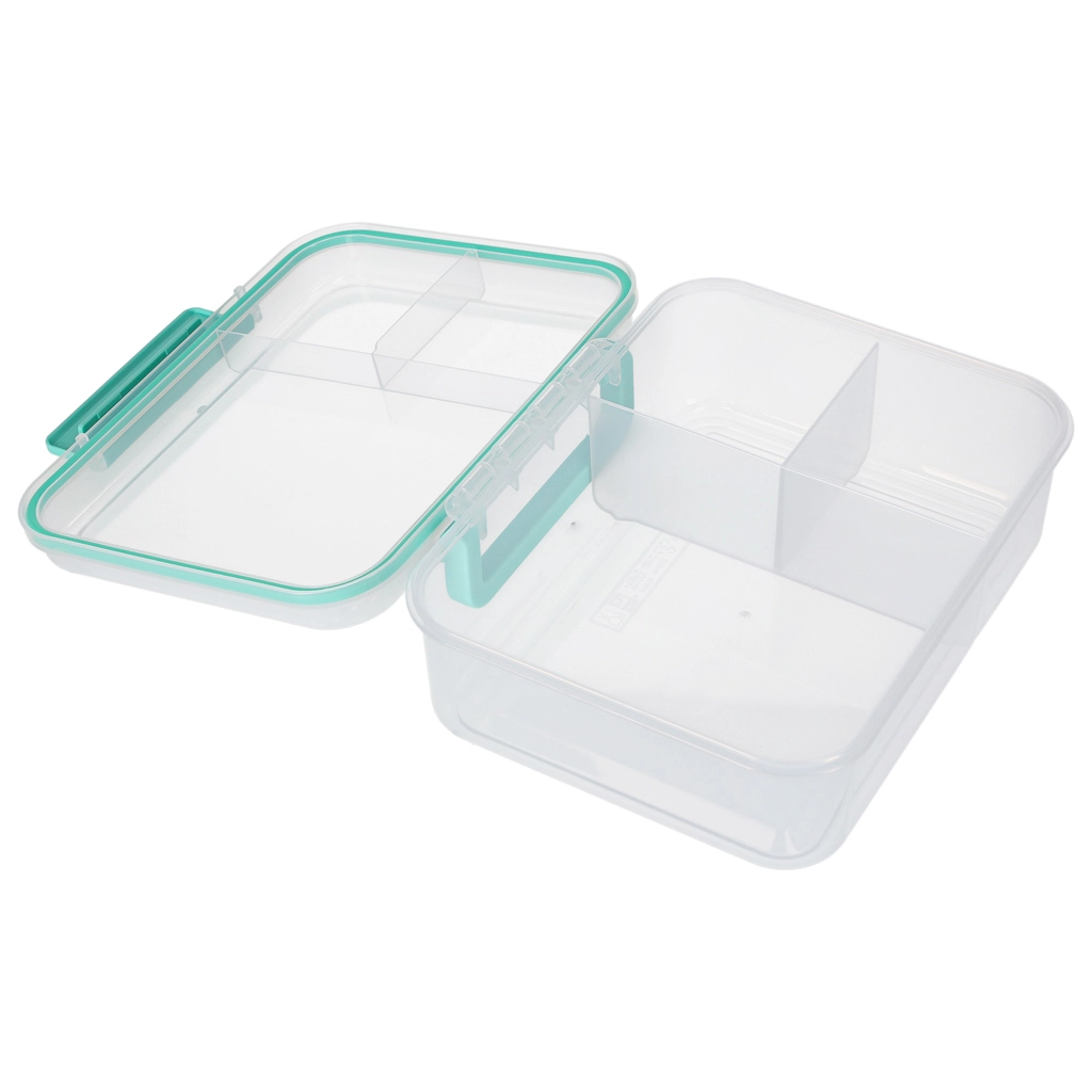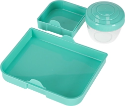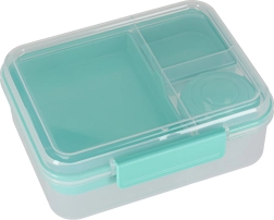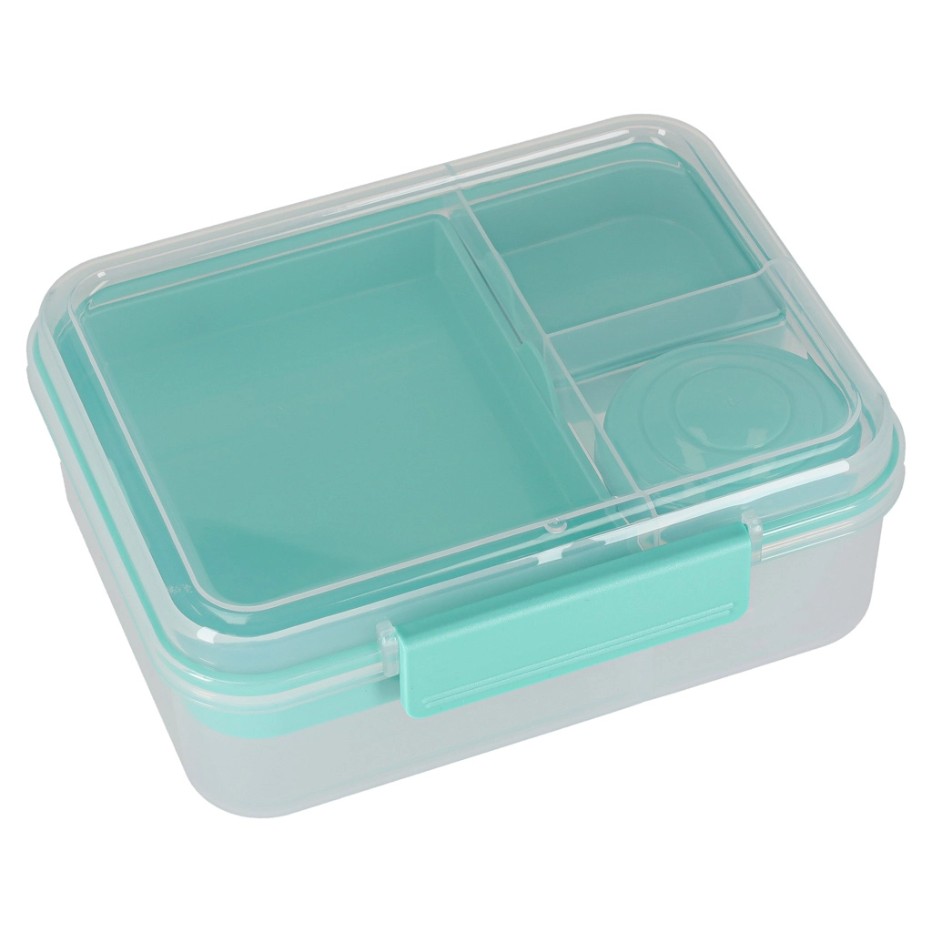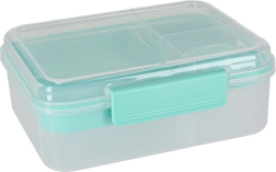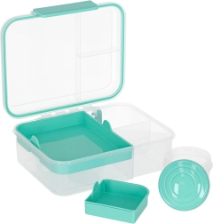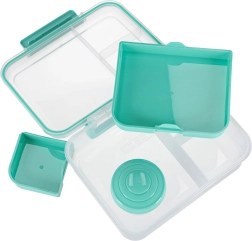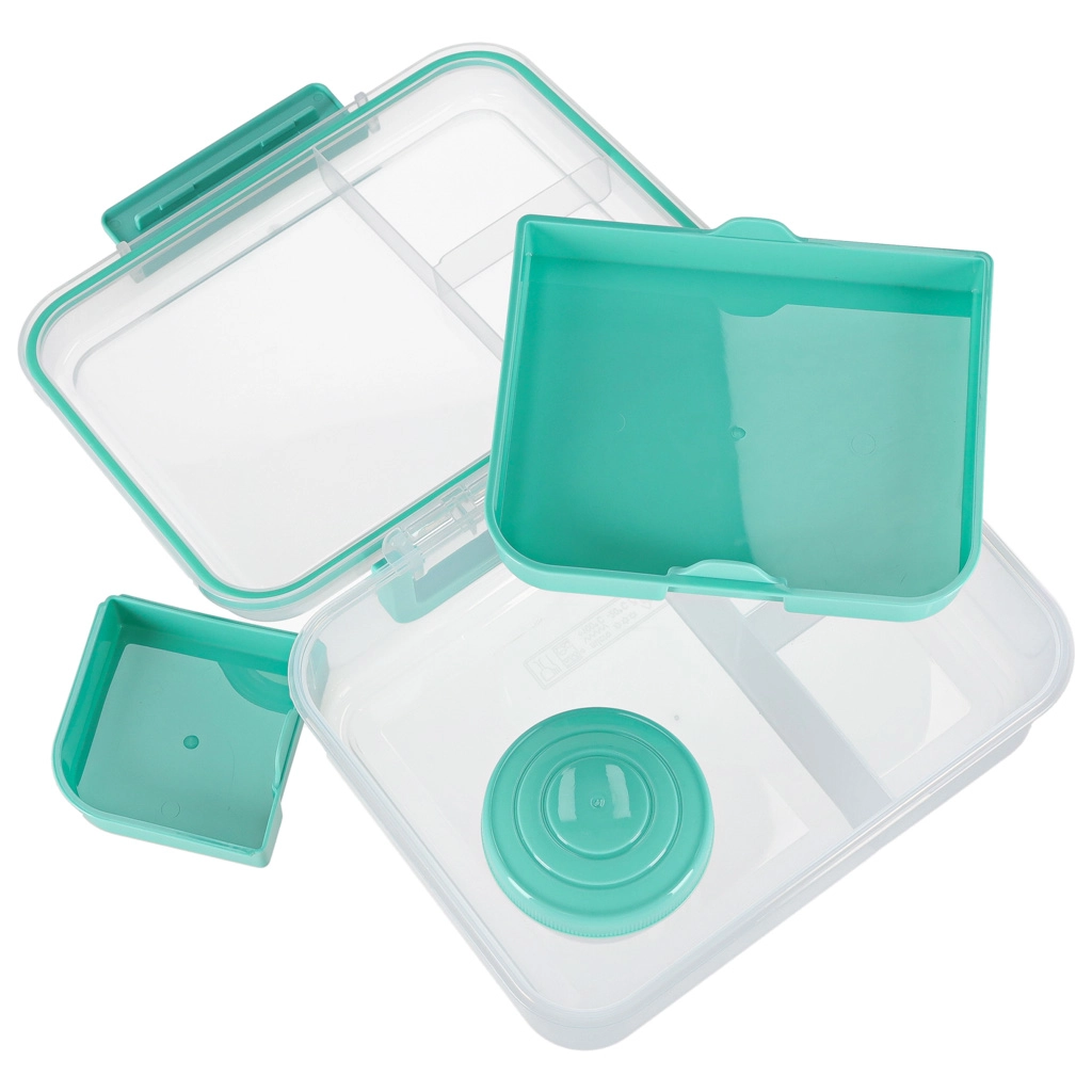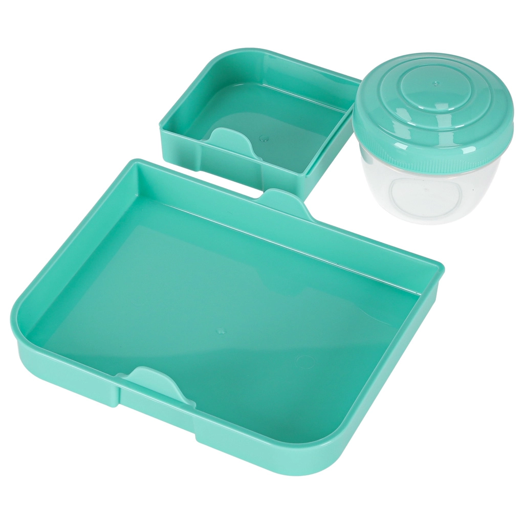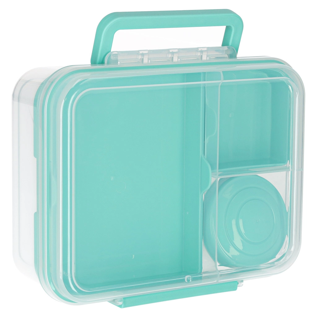 Nowoczesne pudełko na lunch w kolorze miętowym oferuje dużą pojemność i sprytny podział do codziennego zdrowego odżywiania. Modułowe wkładki i wyjmowane piętra umożliwiają oddzielenie kanapek, sałatek, owoców i przekąsek. Przezroczyste elementy ułatwiają szybki wgląd w zawartość, a lekka konstrukcja świetnie się przenosi.