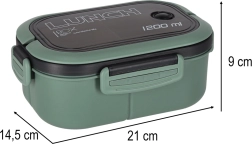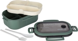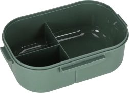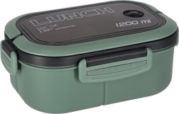 Stylowy i funkcjonalny lunch box w odcieniach zieleni oferuje pojemność 1200 ml oraz przemyślany podział przestrzeni do wygodnego przenoszenia całego obiadu. Dzięki wyjmowanej półce z 3 przegrodami łatwo utrzymasz porcje oddzielnie, bez mieszania smaków.
