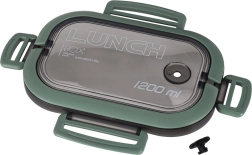 Pokrywka z silikonową uszczelką i czterema bocznymi klipsami gwarantuje niezawodne zamknięcie, dzięki czemu jedzenie nie wycieknie do torby. Pudełko wykonane jest z trwałego, bezpiecznego plastiku bez BPA i można je używać w zmywarce oraz kuchence mikrofalowej (bez pokrywki).