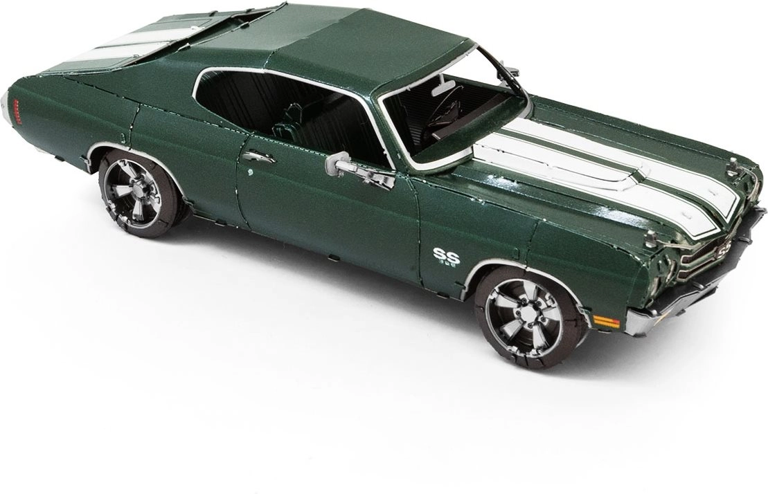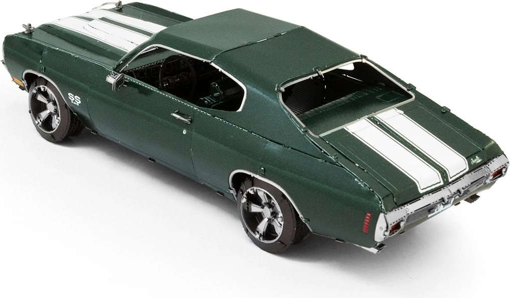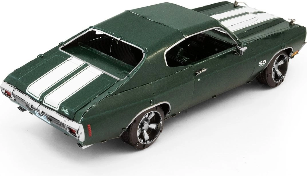 Odkryj urok metalowych zestawów METAL EARTH i stwórz wierną miniaturę legendarnego muscle cara 1970 Chevrolet Chevelle. Elementy wycina się z arkuszy stali nierdzewnej i łączy za pomocą zamków – bez kropli kleju. Precyzyjne grawerowanie laserowe nadaje modelowi autentyczny wygląd.