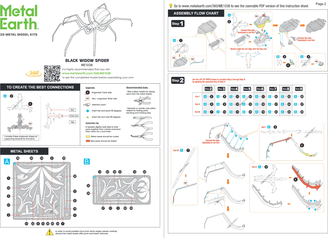 METAL EARTH oferuje metalowe puzzle 3D, które z płaskich stalowych blaszek zamienisz w efektowny model Czarnej Wdowy. Części łatwo wyjmuje się z blaszek i łączy za pomocą zamków – bez kleju. Dzięki szczegółowemu grawerowaniu laserowemu uwydatnione są realistyczne faktury ciała i nóg, a gotowy model stanie się świetną dekoracją, prezentem i kolekcjonerskim eksponatem.