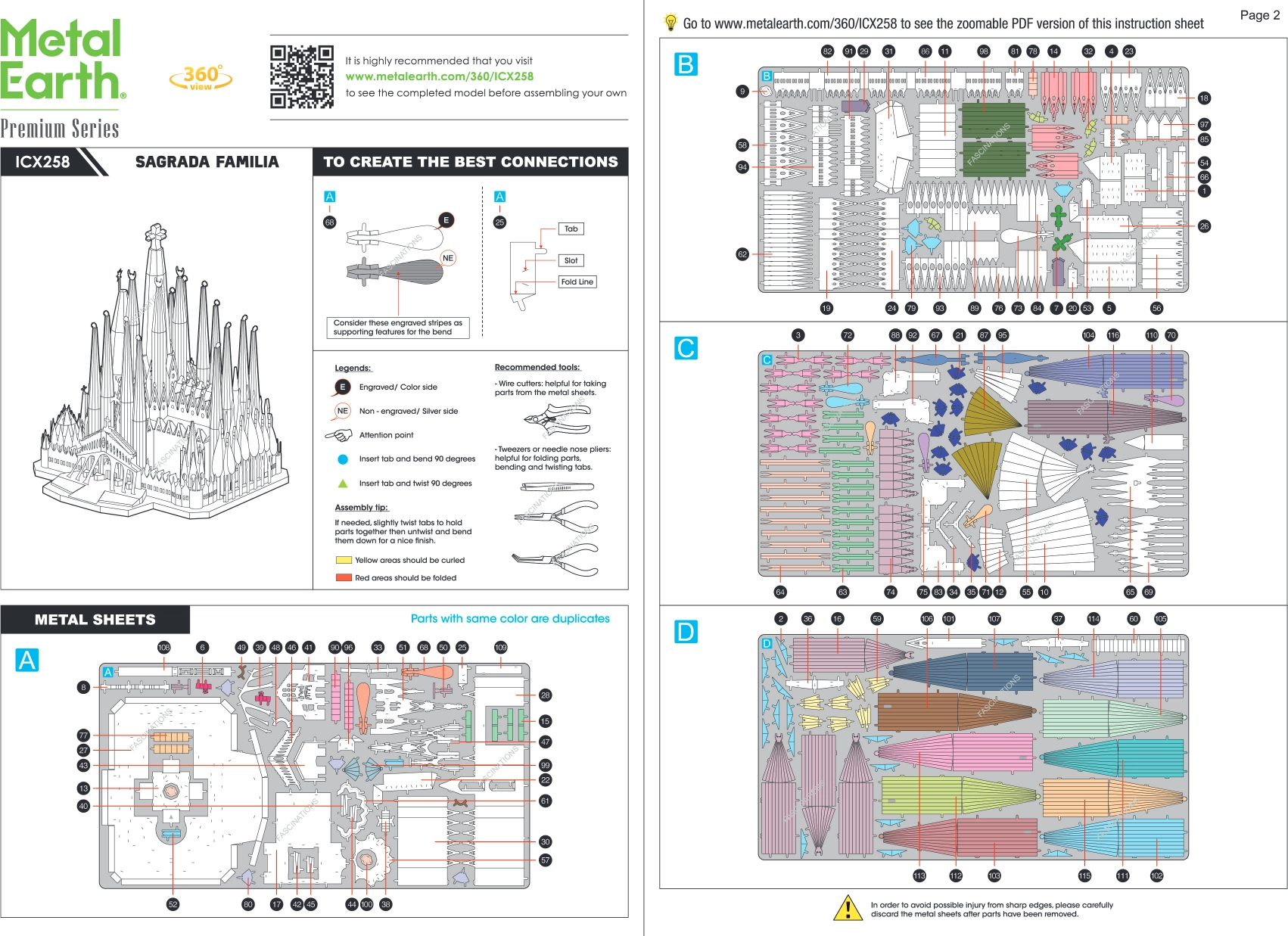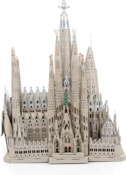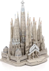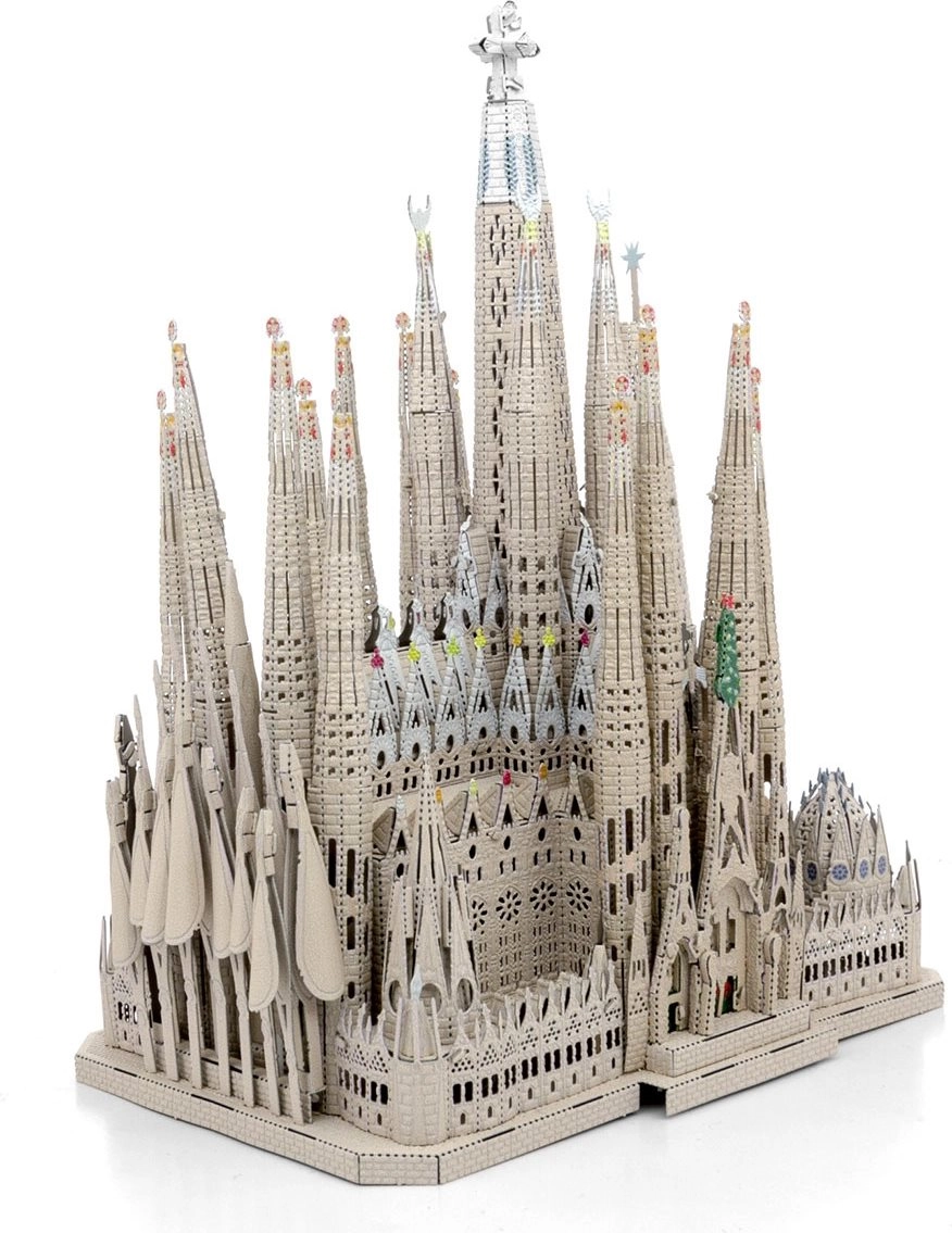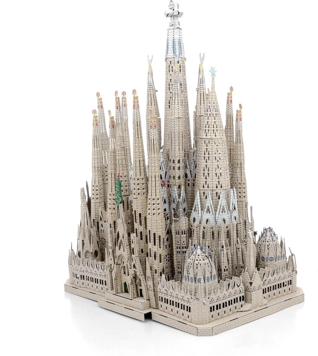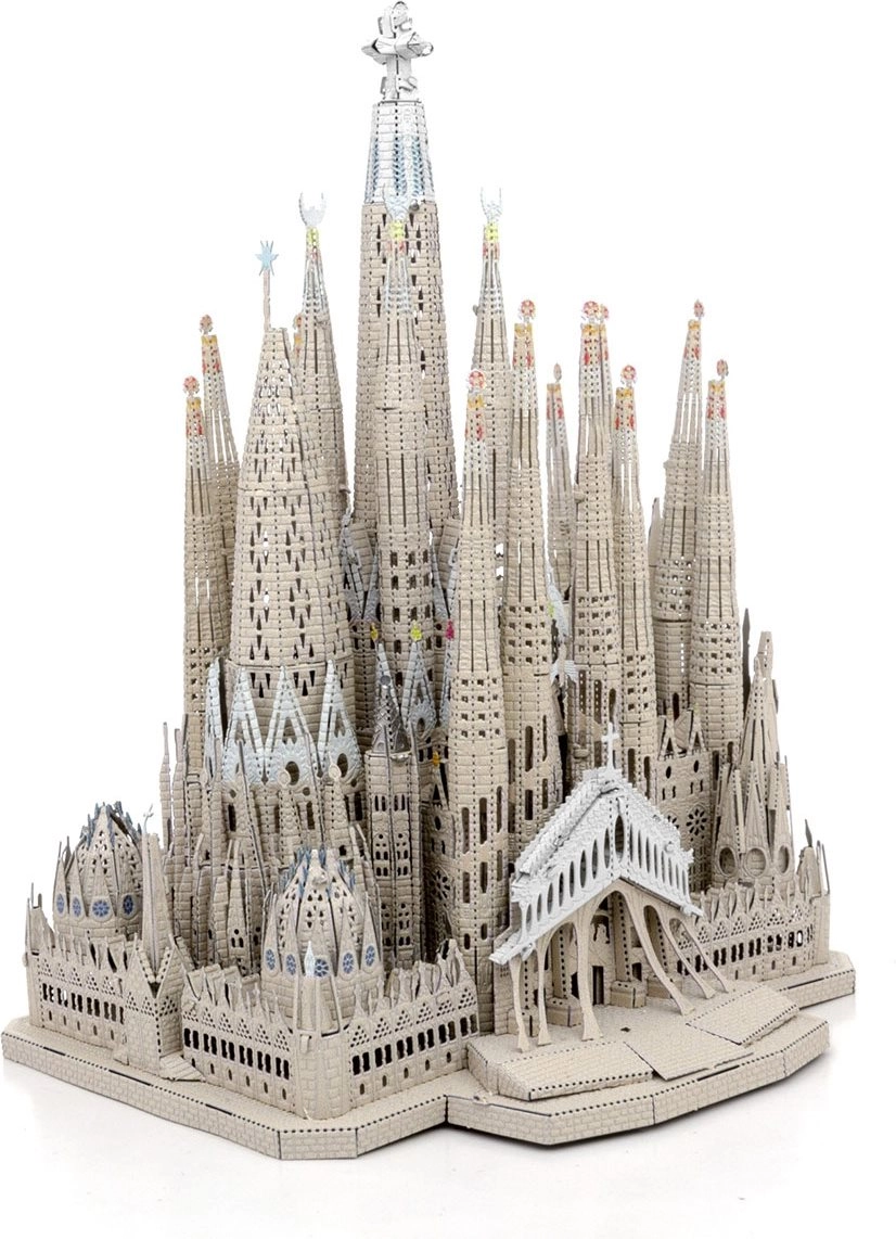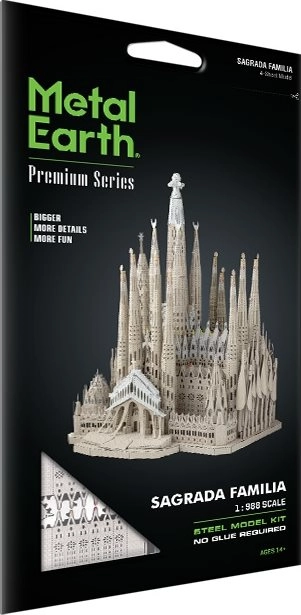 Przemysłowa seria METAL EARTH pozwala z płaskich stalowych blach stworzyć efektowny trójwymiarowy model Sagrady Família. Poszczególne elementy wyjmuje się z metalowych arkuszy i łączy za pomocą zamków – bez użycia kleju. Laserowo grawerowane detale podkreślają fasady, wieże oraz okna, nadając modelowi autentyczny wygląd.