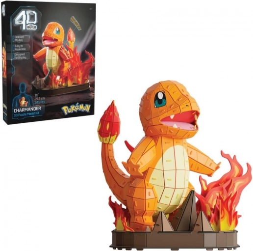 Zestaw zmienia się w kolorową figurkę 3D CHARMANDERA na podstawce z płomieniami. Świetna aktywność na wolny czas i prezent dla fanów.