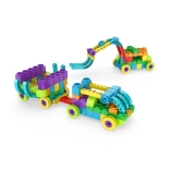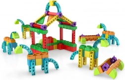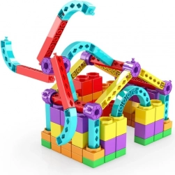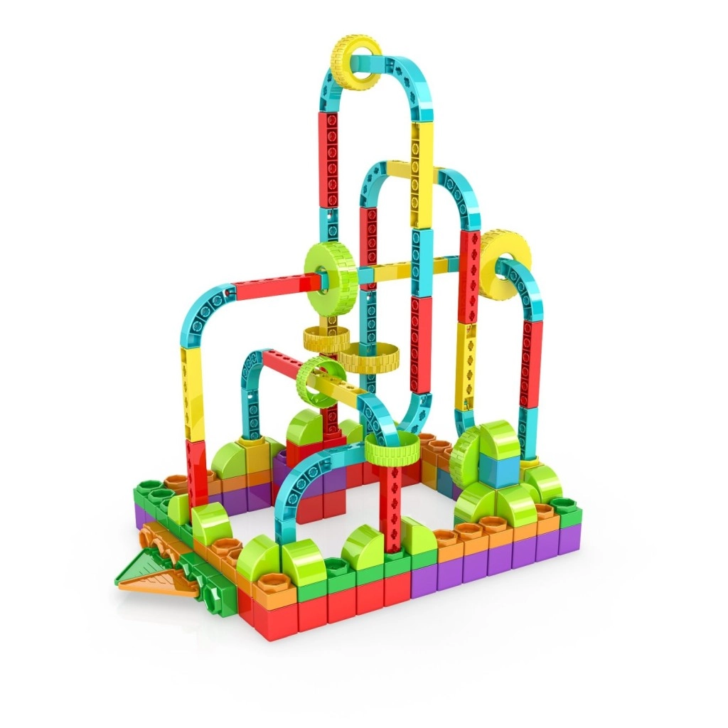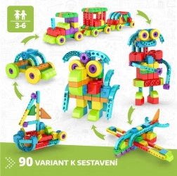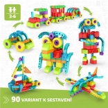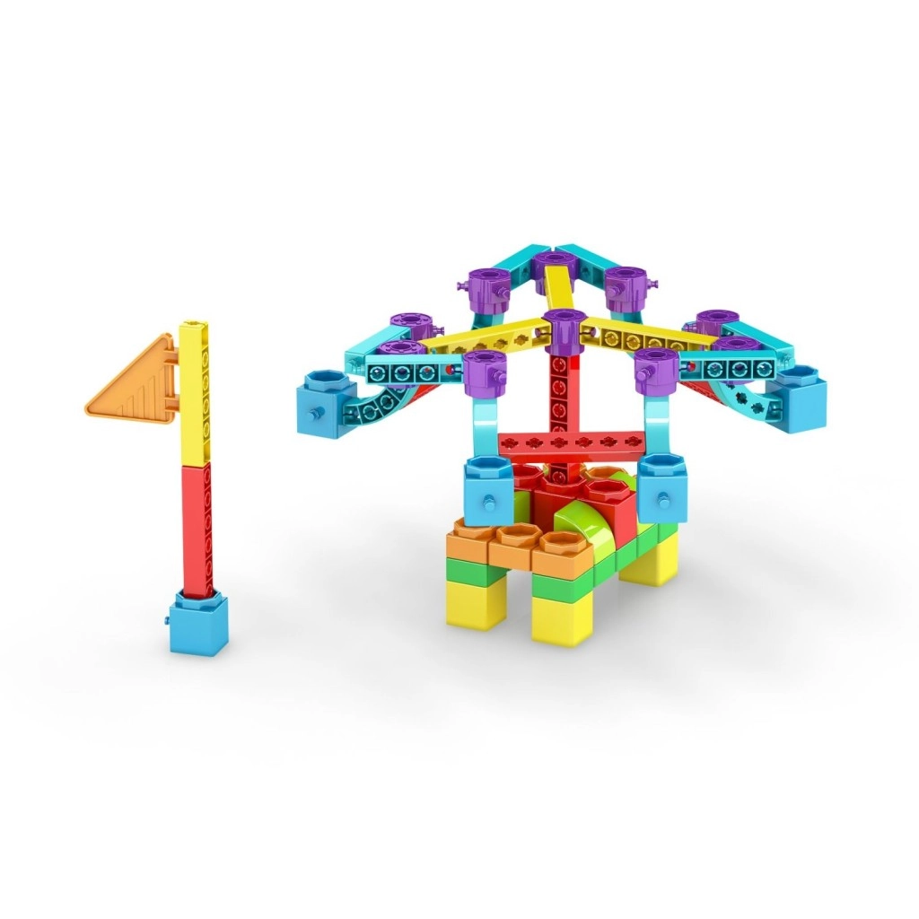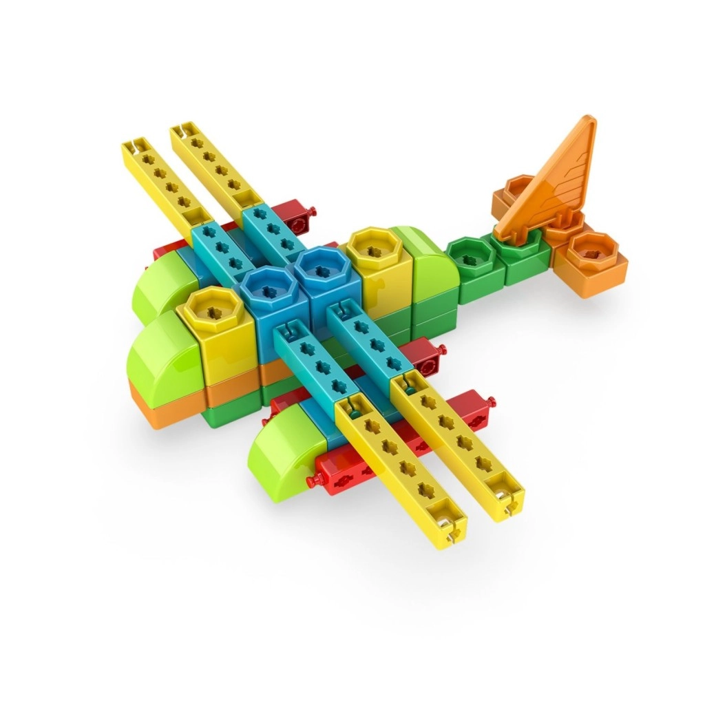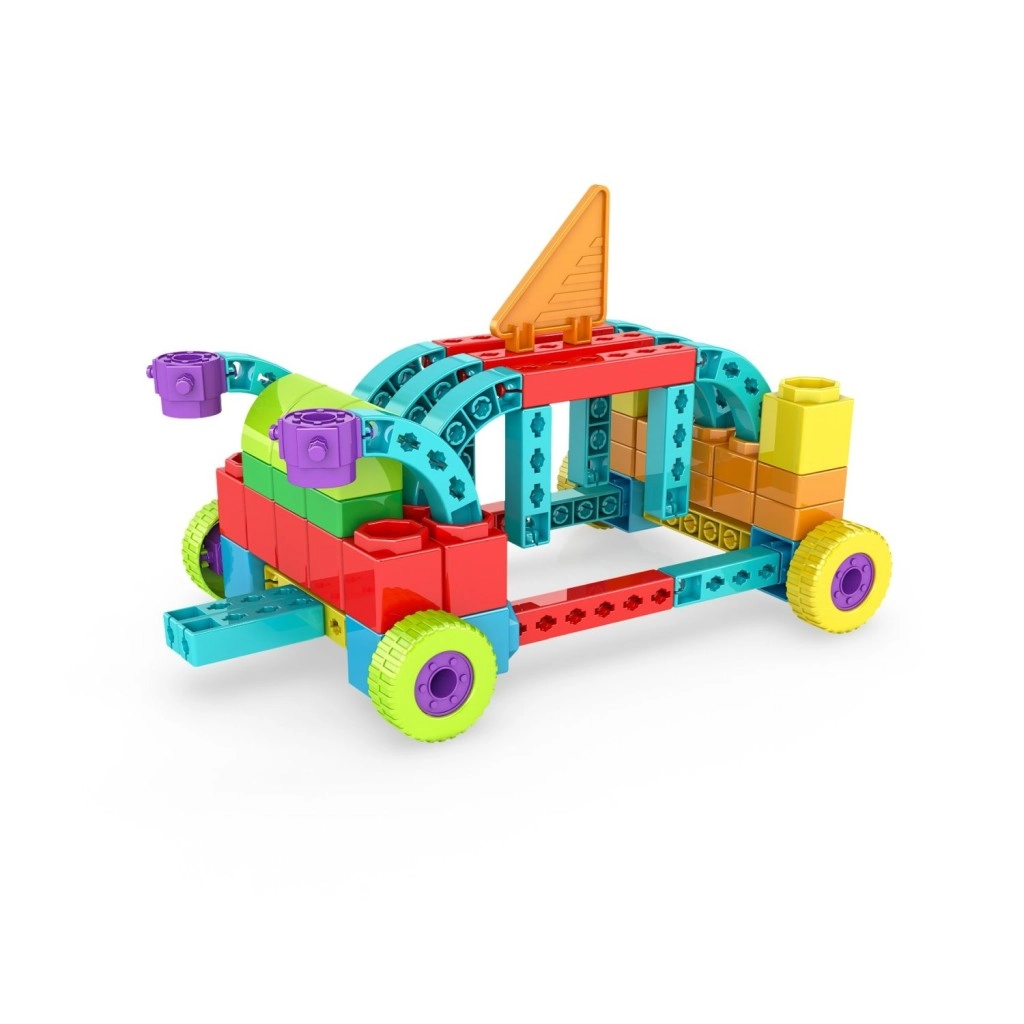 Solidne, gładkie i barwne komponenty łatwo się łączą i trzymają. Idealne dla małych rąk i bezpiecznej zabawy od 3 lat.