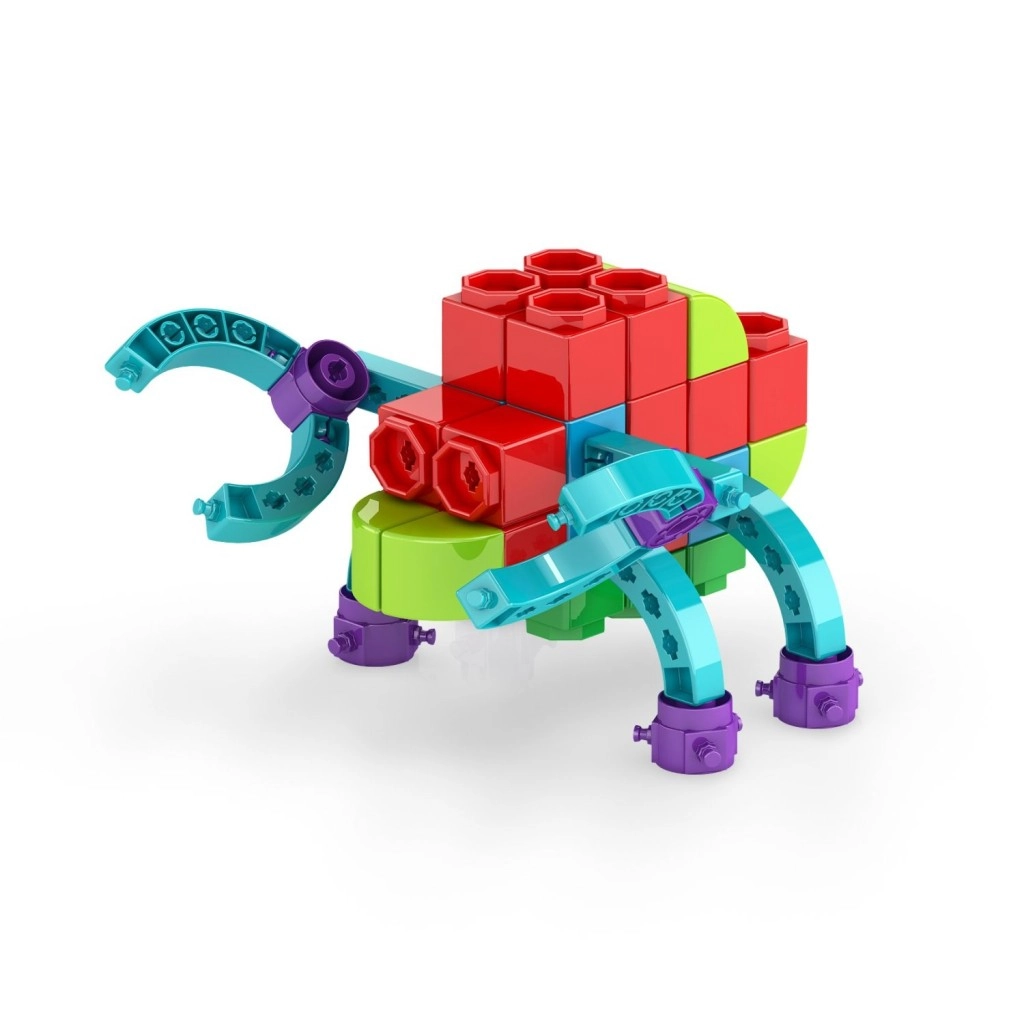 Startowa walizka z 1238 elementami oferuje aż 90 różnych projektów – od zwierzątek i figurek po auta, helikoptery czy fantazyjne stwory. Zestaw wspiera zasady nauki STEM (nauka, technika, technologia, matematyka) i rozwija koordynację ręka–oko, wyobraźnię oraz umiejętność rozwiązywania problemów.