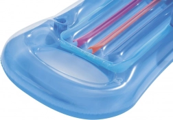Ten stylowy niebieski leżak łączy wygodę i stabilność. Podwyższone podłokietniki oraz ergonomiczne oparcie pleców i głowy utrzymują ciało w komfortowej pozycji, a liczne komory powietrzne zapewniają bardzo dobrą stabilność wypornościową. Zintegrowany uchwyt na napój pozwala cieszyć się ulubionym drinkiem bez konieczności wychodzenia z wody.