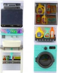 Ten szczegółowo opracowany zestaw domowej łazienki oferuje wszystko do wiarygodnej zabawy: umywalkę z lustrem, pralkę ładowaną od frontu, szafkę oraz bogaty zestaw akcesoriów. Lustro rozświetla się po włożeniu baterii, a pralka zapewnia efekty świetlne i dźwiękowe, które wzmacniają realistyczne wrażenia.