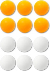 Zestaw wysokiej jakości piłeczek do ping-ponga w kolorze białym i pomarańczowym do gry rekreacyjnej i treningowej. Zawiera 12 sztuk, wykonanych z trwałego plastiku o znakomitym odbiciu i niskiej masie, co zapewnia płynną i przyjemną grę w domu, klubie i szkole.