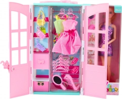 Ten bogato wyposażony zestaw ucieszy każde dziecko, które kocha modę i styl. Otwierana szafa z półeczkami skrywa kolorowe sukieneczki, praktyczne wieszaczki, dopasowane buty i torebki. Dzięki lusterku i grzebykowi lalka przygotuje się na każdą okazję. Zabawa rozwija wyobraźnię, motorykę małą oraz zmysł łączenia kolorów i stylów.