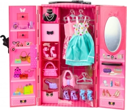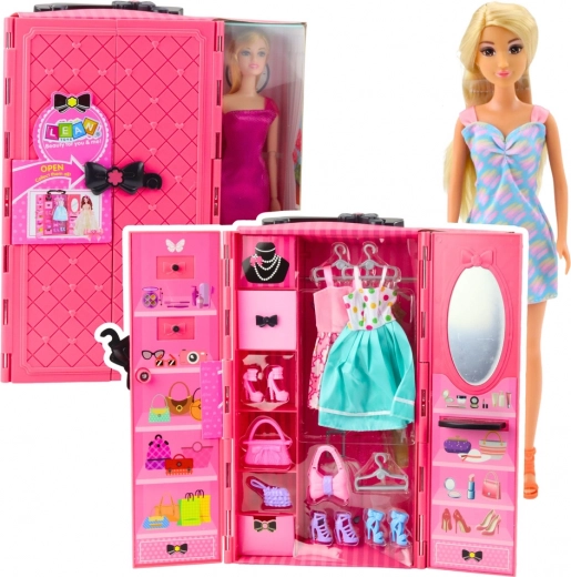 Ten bogato wyposażony zestaw obejmuje lalkę o wysokości 30 cm oraz różową szafę z otwieranymi drzwiami, lustrem i półkami do przechowywania. Dzięki szerokiemu wyborowi ubranek i akcesoriów można łatwo przygotować lalkę na każdą okazję – od spaceru po elegancki wieczór.