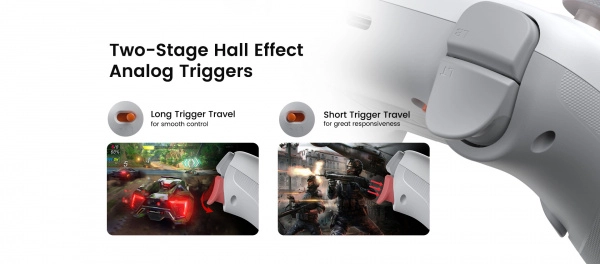 Łącz się tak, jak chcesz: Bluetooth dla wygody, 2,4 GHz dla stabilności i minimalnych opóźnień lub USB‑C dla najniższej latencji. Dwa tylne programowalne przyciski oraz opcjonalny tryb hair trigger dopasują kontroler do Twojego stylu. Podwójne asymetryczne silniki wibracyjne dodają realistyczną haptykę.