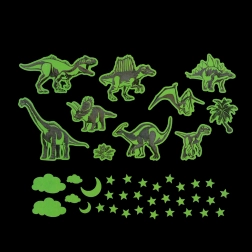 Stwórz dziecięcy pokój pełen fantazji dzięki tym świecącym naklejkom z dinozaurami. Wystarczy przykleić je na ścianę lub meble, a po zgaszeniu światła rozbłysną, dzięki czemu zasypianie będzie łatwiejsze.