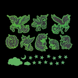 Rozwesel dziecięcy pokój magiczną dekoracją z motywem jednorożców, którą łatwo nakleisz na ścianę lub meble, a po zgaszeniu światła świeci w ciemności. Wystarczy nakleić i zasypianie będzie bajecznie proste!