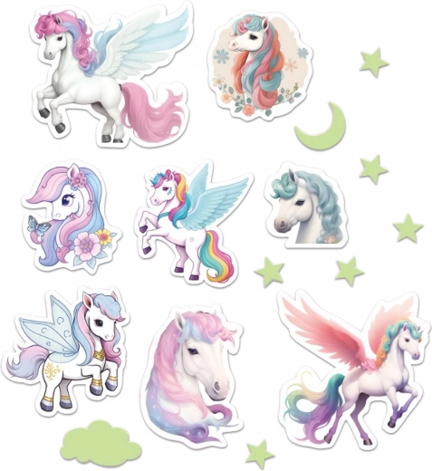 Stwórz magiczną atmosferę dzięki samoprzylepnej dekoracji z jednorożcami. W dzień cieszy wesołymi kolorami, a w nocy delikatnie fosforyzuje, dzięki czemu dzieci czują się spokojniej i bezpieczniej.