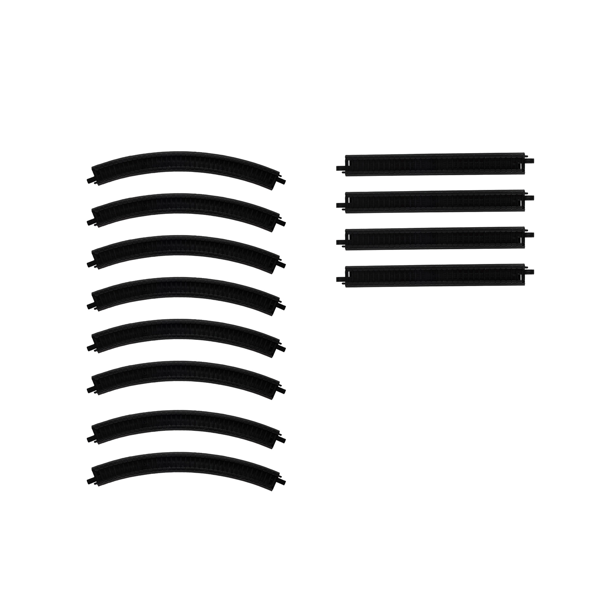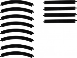 Zestaw 8 zakrzywionych i 4 prostych torów pozwala łatwo zbudować owal lub rozbudować istniejącą trasę. Rozstaw torów 1,4 cm zapewnia stabilną jazdę.