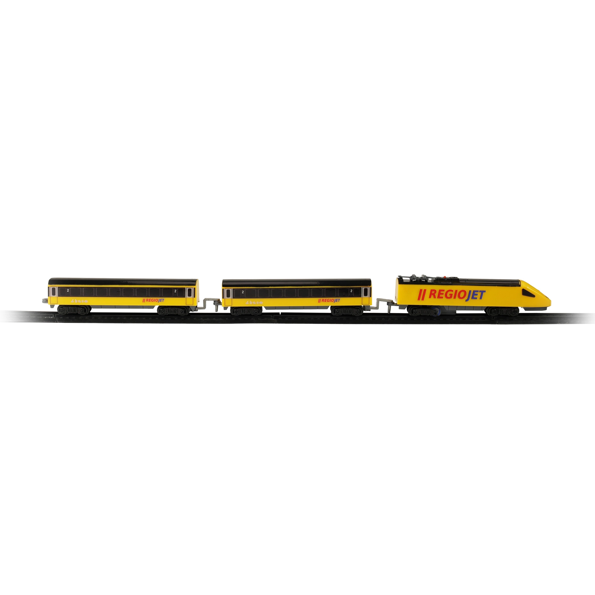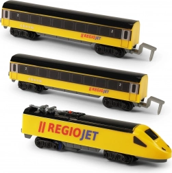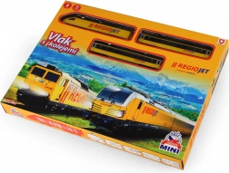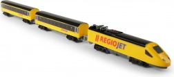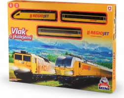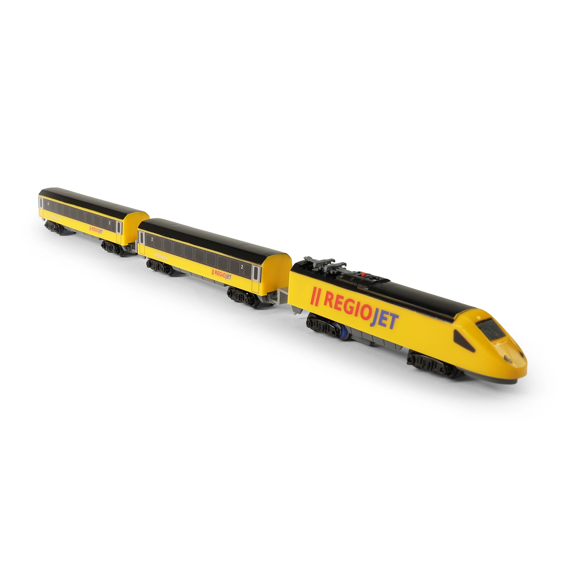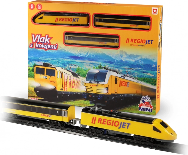 Odkryj radość z kolejki dzięki kompaktowemu zestawowi RegioJet MINI. Żółta lokomotywa z dwoma wagonami jeździ po modułowym torowisku, które łatwo złożysz z 8 zakrzywionych i 4 prostych elementów. Dzięki praktycznemu przełącznikowi na dachu lokomotywy sterowanie jest bardzo proste, więc dzieci mogą szybko zacząć zabawę.
