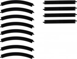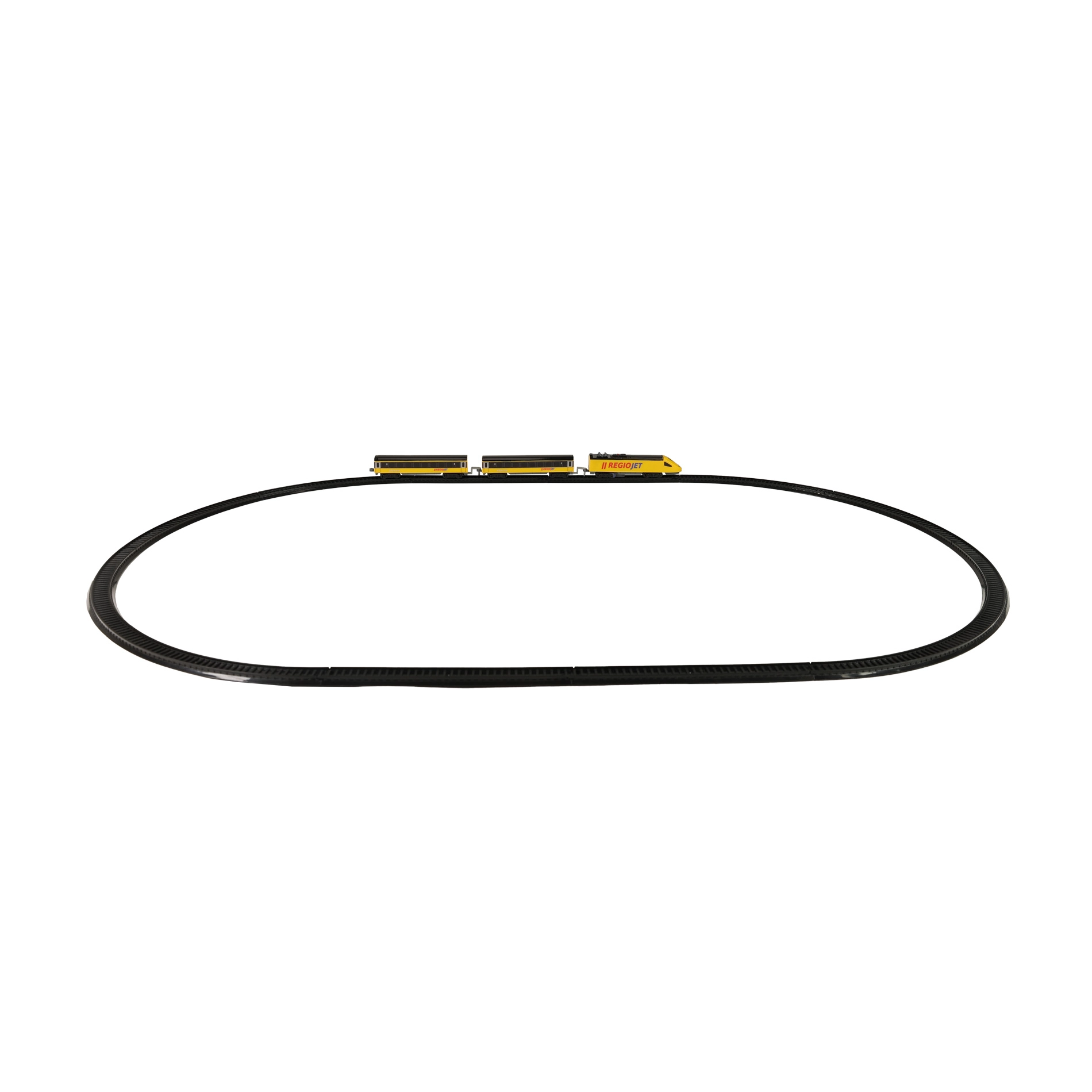 Zestaw obejmuje zakrzywione i proste odcinki torów, z których złożysz zamkniętą pętlę do nieprzerwanej jazdy pociągu.