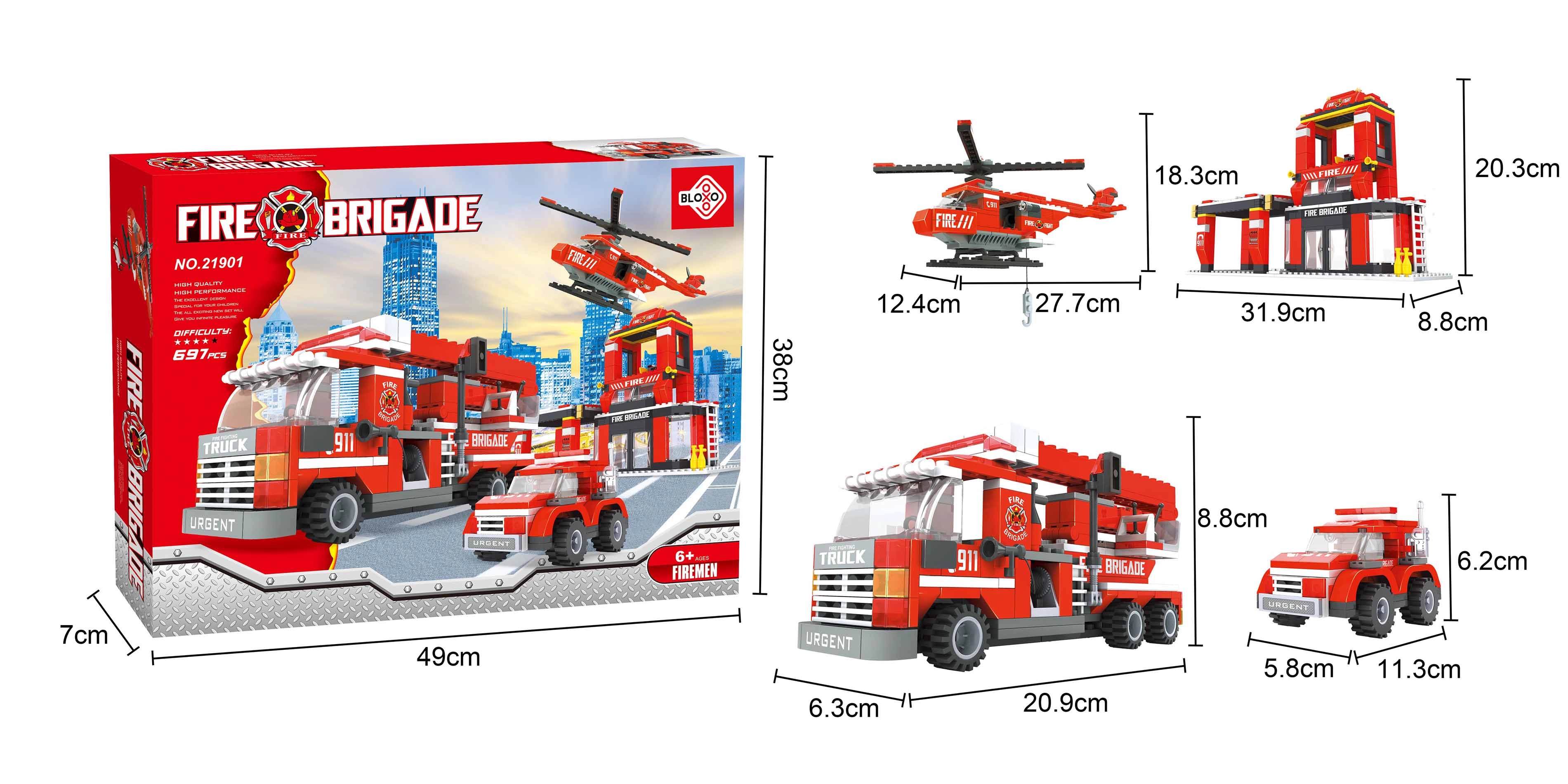 - 636 elementów do budowy remizy strażackiej i scenariuszy zabaw