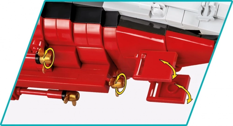 Dzięki zaawansowanym technikom budowy i nowym elementom możesz liczyć na ruchome śruby i stery, obrotowe wieże oraz podnoszone/opuszczane lufy. W zestawie znajduje się solidny czarny stojak z nadrukowaną plakietką „Tirpitz”. Zestaw nie wymaga klejenia ani malowania – wszystko zbudujesz wyłącznie z klocków COBI, kompatybilnych z innymi markami.