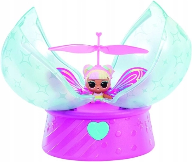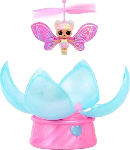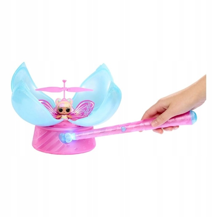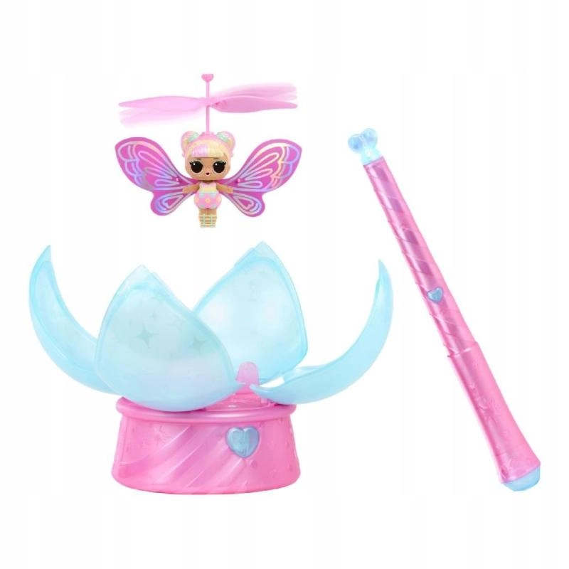 Magiczna latająca wróżka L.O.L. Surprise! Flower Child oczaruje każdy dziecięcy pokój. Wystarczy stuknąć w serce kwiatu, a wróżka elegancko uniesie się nad bazą. Latanie jest intuicyjne – wróżka reaguje na ruch dłoni lub lekkie machnięcie dołączoną magiczną różdżką.