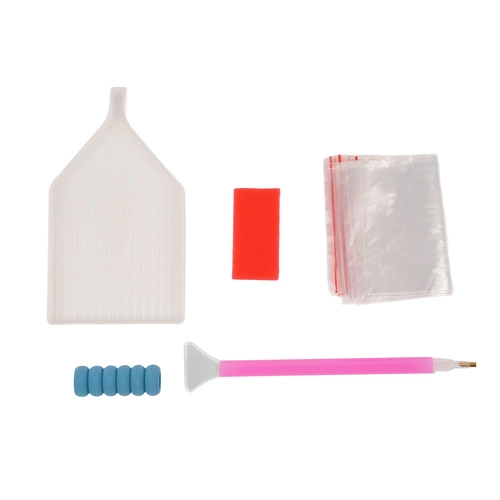 W zestawie znajduje się płótno z klejem, kolorowe kryształki w woreczkach, aplikator z uchwytem, wosk oraz tacka do sortowania – możesz tworzyć od razu.