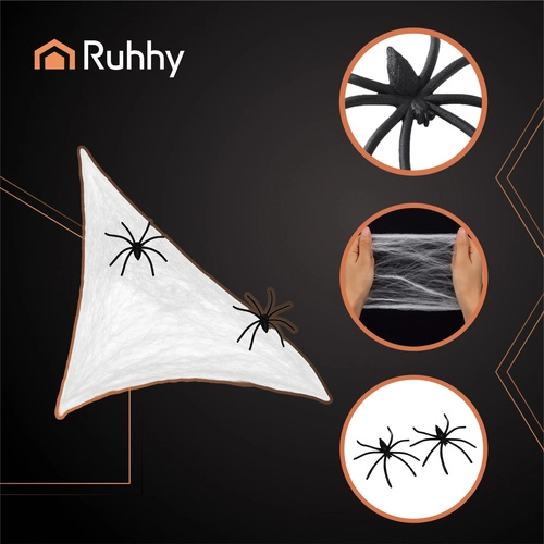 Stwórz mrożącą krew w żyłach atmosferę podczas Halloween z dekoracją RUHHY – rozciągliwą sztuczną pajęczyną i 2 czarnymi pająkami. Lekki i elastyczny materiał łatwo przylega do różnych powierzchni, pozwalając szybko stworzyć realistyczną pajęczynę nad drzwiami, na poręczy, ścianie, lampie czy stole. Idealna na halloweenowe imprezy, wydarzenia tematyczne, scenografię i domowe dekoracje.