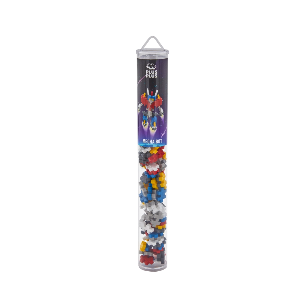 Praktyczne opakowanie w tubie jest idealne w podróży i do szybkiego sprzątania. W zestawie znajdziesz 100 kolorowych elementów oraz instrukcję krok po kroku do budowy robota Mecha Bot – świetny start dla małych konstruktorów.