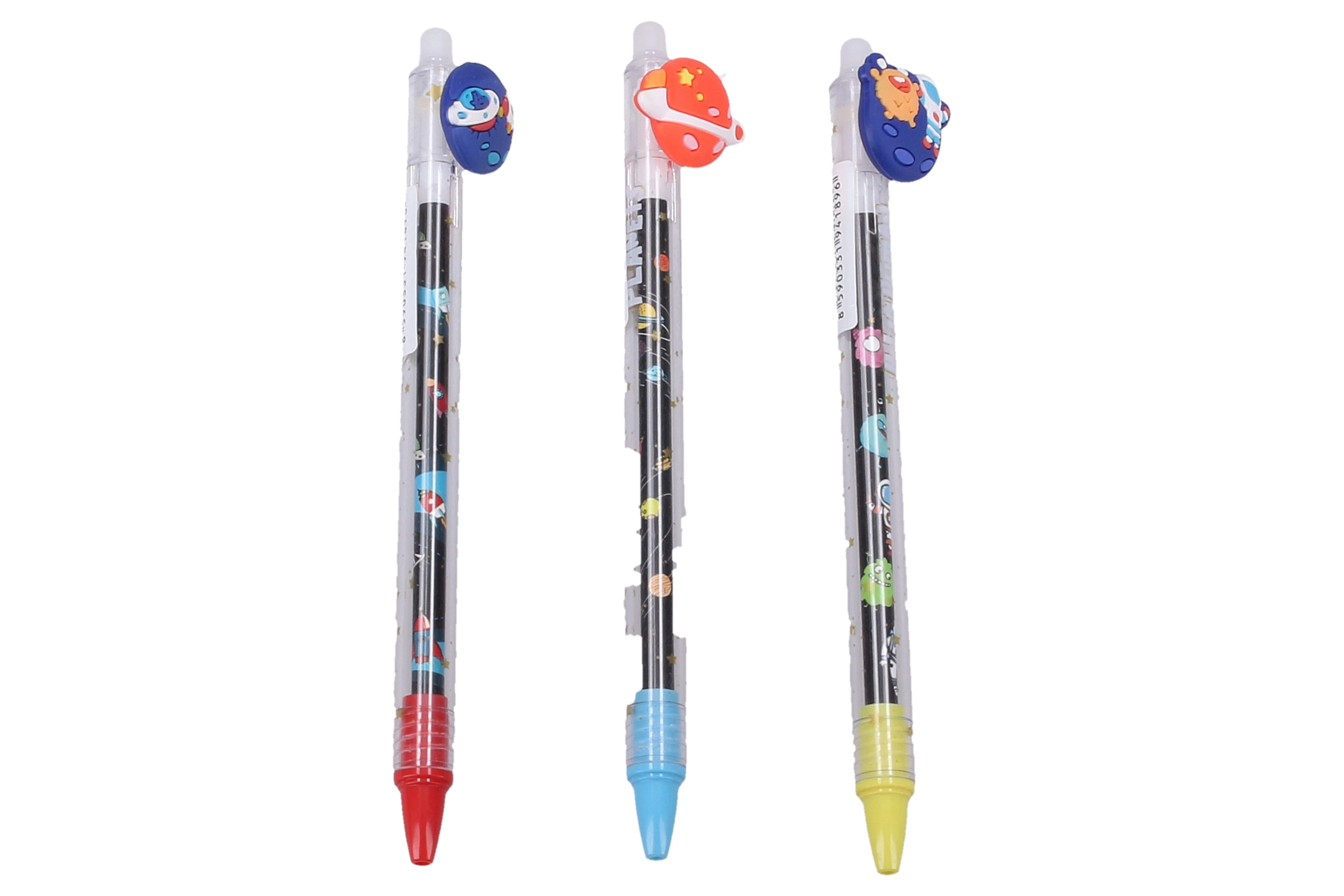 Odkryj zabawną i praktyczną pomoc do pisania na co dzień: wymazywalny długopis z cienką końcówką 0,5 mm w designie „Kosmos”. Dzięki specjalnemu tuszowi łatwo poprawisz błędy za pomocą zintegrowanej gumki i zachowasz czysty, schludny zeszyt. Dostępny w 3 wersjach kolorystycznych i idealny do szkoły, biura oraz domowych notatek. Praktyczne opakowanie 36 sztuk w display boxie jest perfekcyjne dla sklepów i współdzielonych biur.