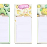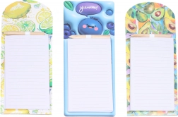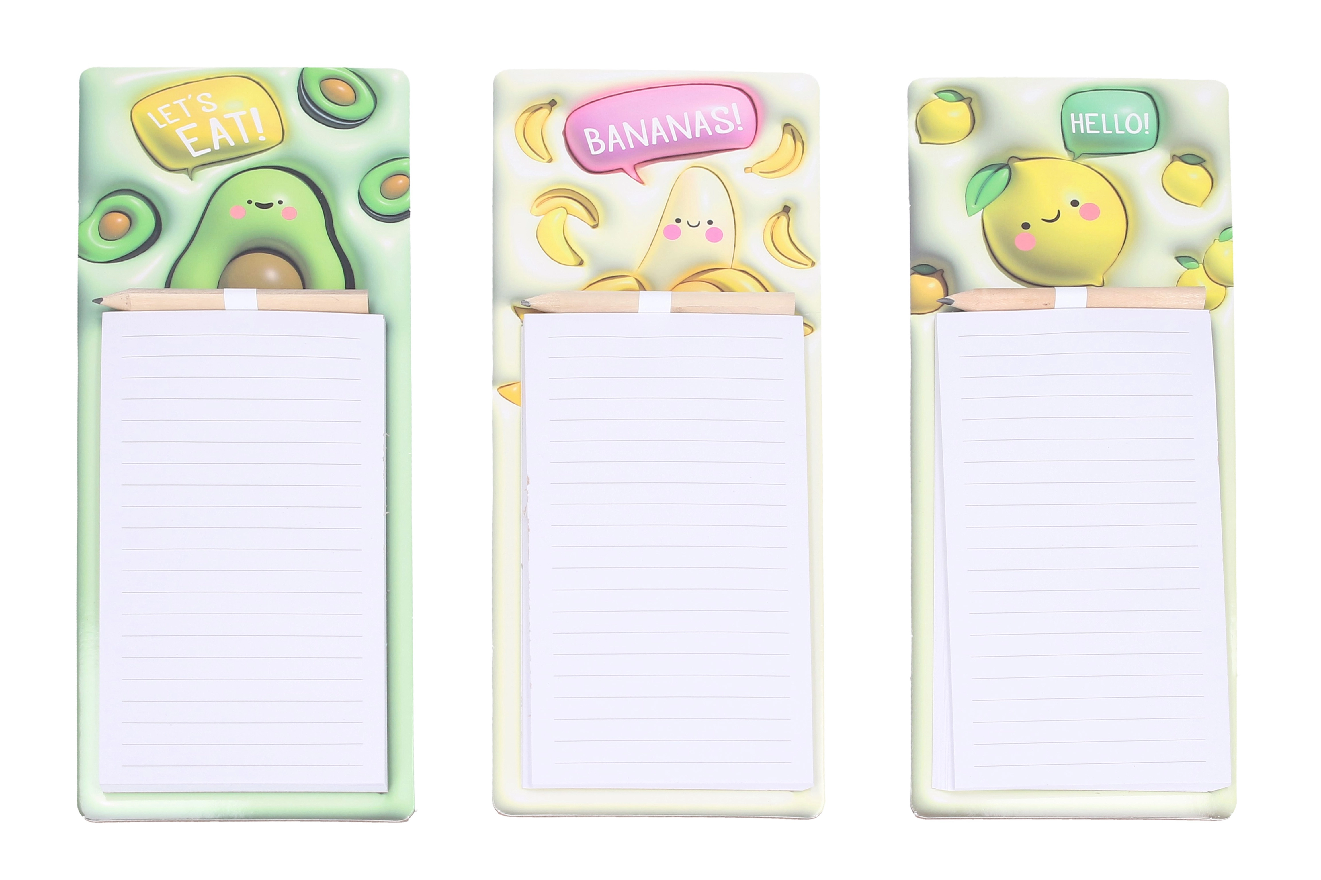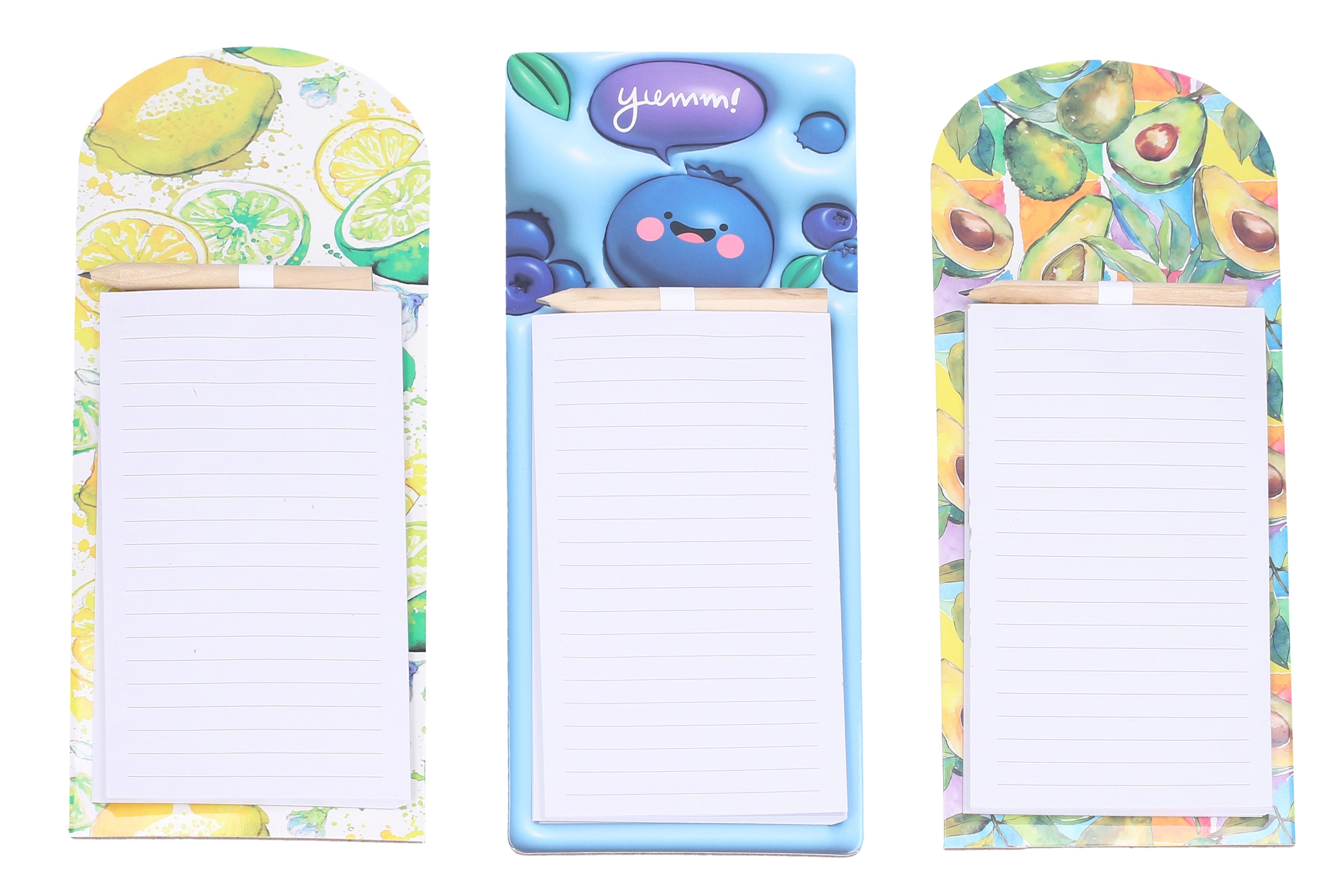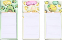 Wprowadź porządek w zakupach i codziennych zadaniach dzięki magnetycznym notesom z wesołymi owocowymi motywami. Dzięki mocnemu magnesowi łatwo przymocujesz je do lodówki lub innych metalowych powierzchni, więc zawsze będą pod ręką. W zestawie praktyczny ołówek umieszczony w górnej części, abyś mógł pisać w każdej chwili bez szukania.
