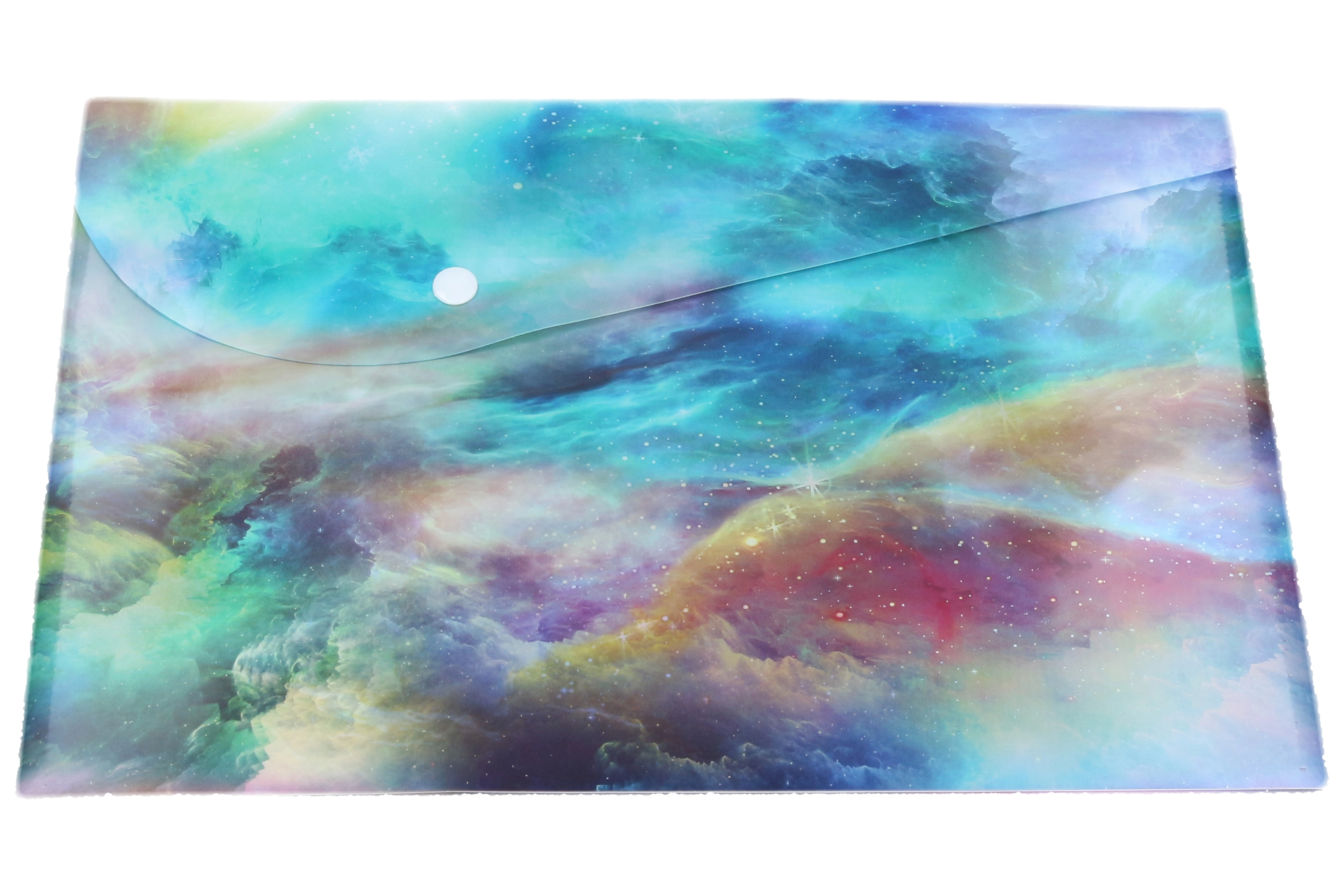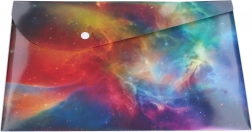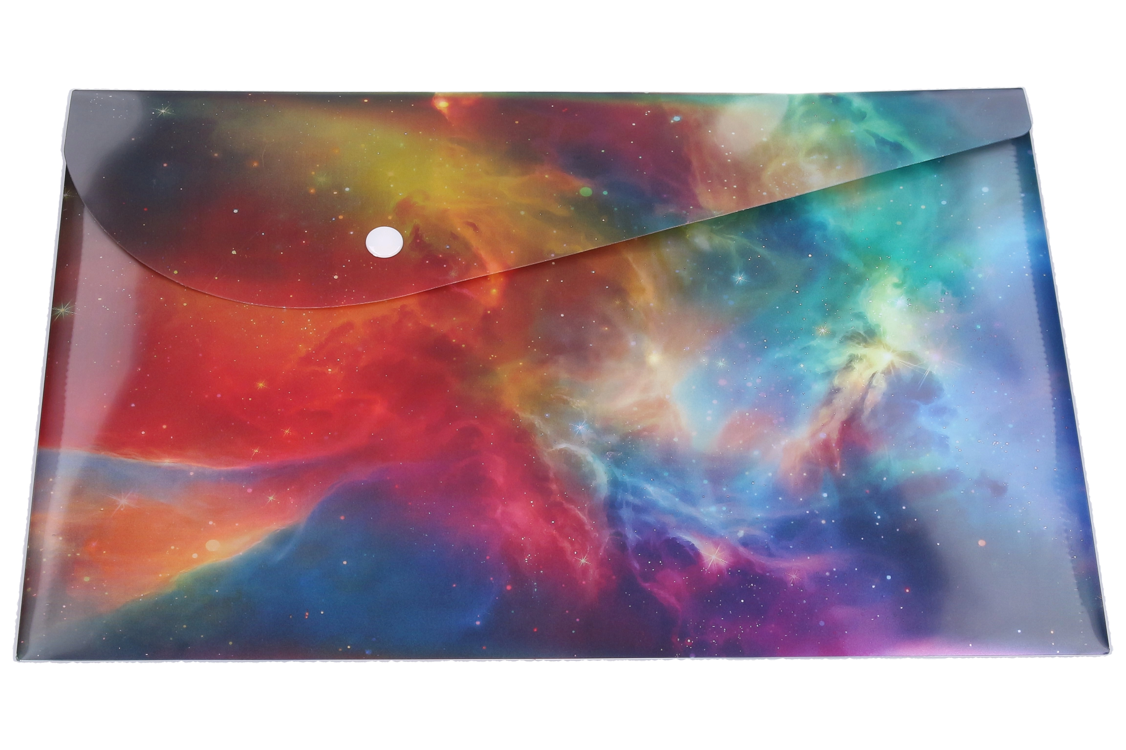 Kosmiczny design z motywami galaktyk doda Twoim materiałom roboczym oryginalnego charakteru. Teczka idealnie nadaje się do organizacji dokumentów A4, paragonów, kart pracy oraz zeszytów szkolnych. Dzięki półprzezroczystemu materiałowi łatwo zobaczysz, co jest w środku, a jednocześnie zawartość jest chroniona.