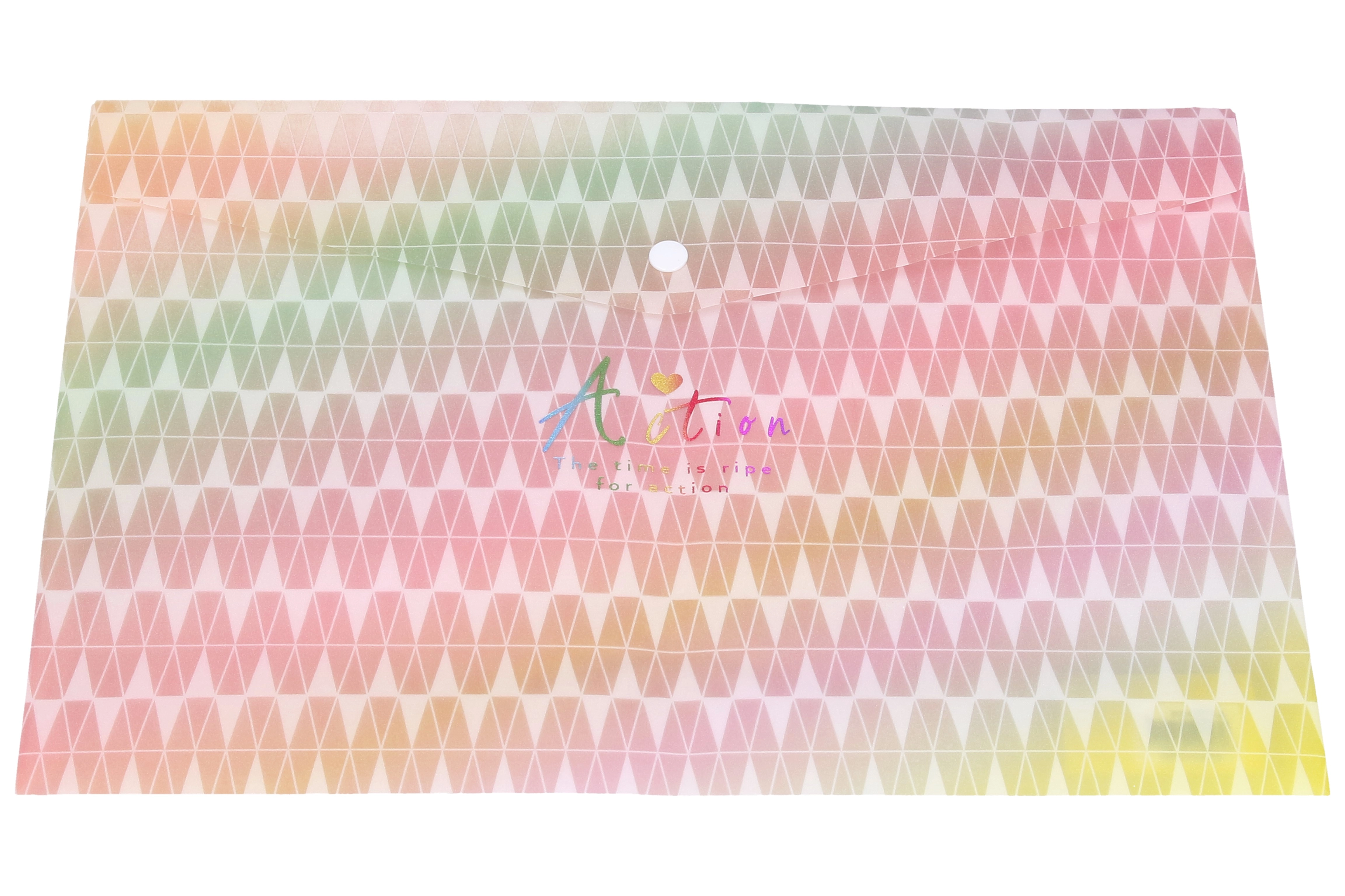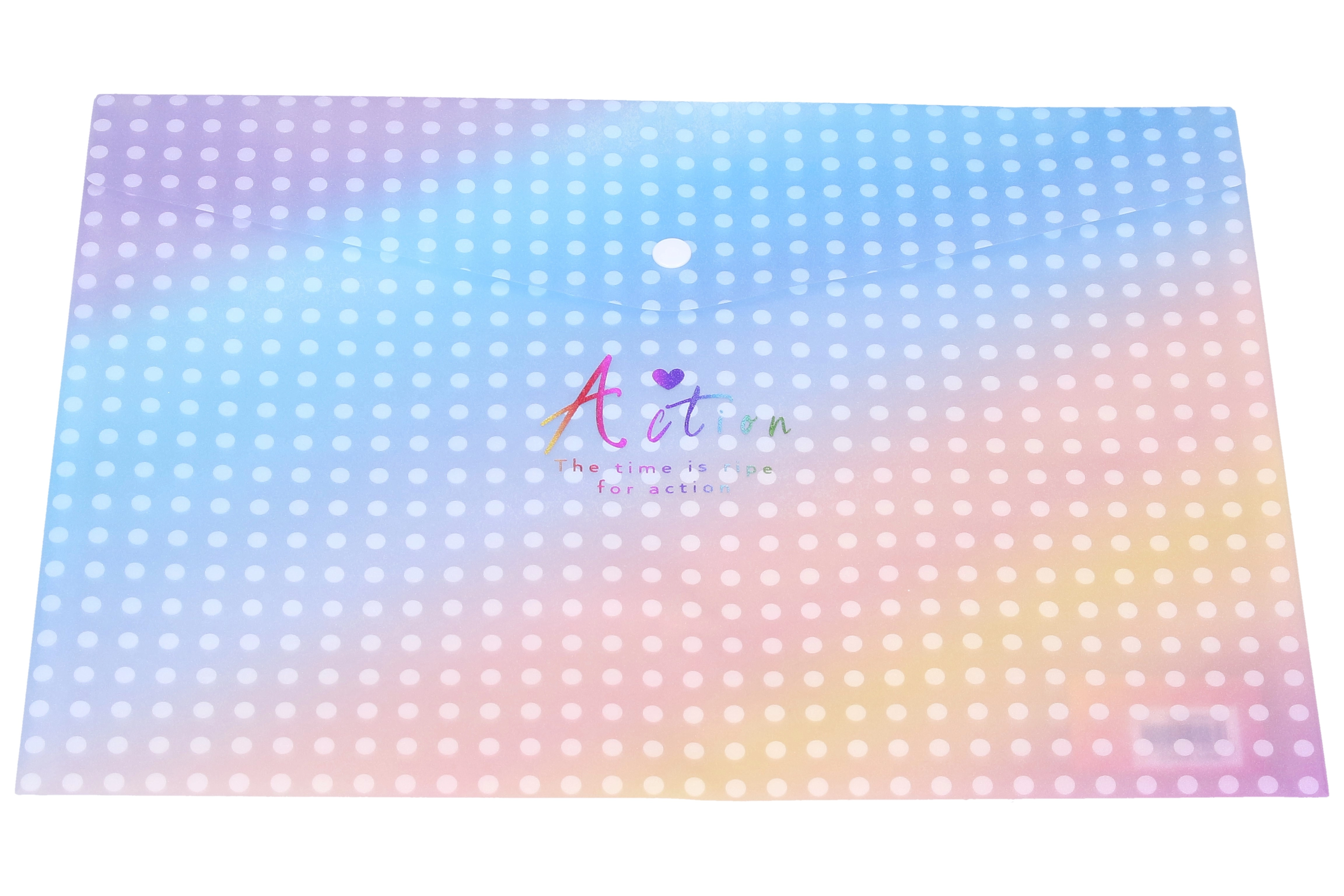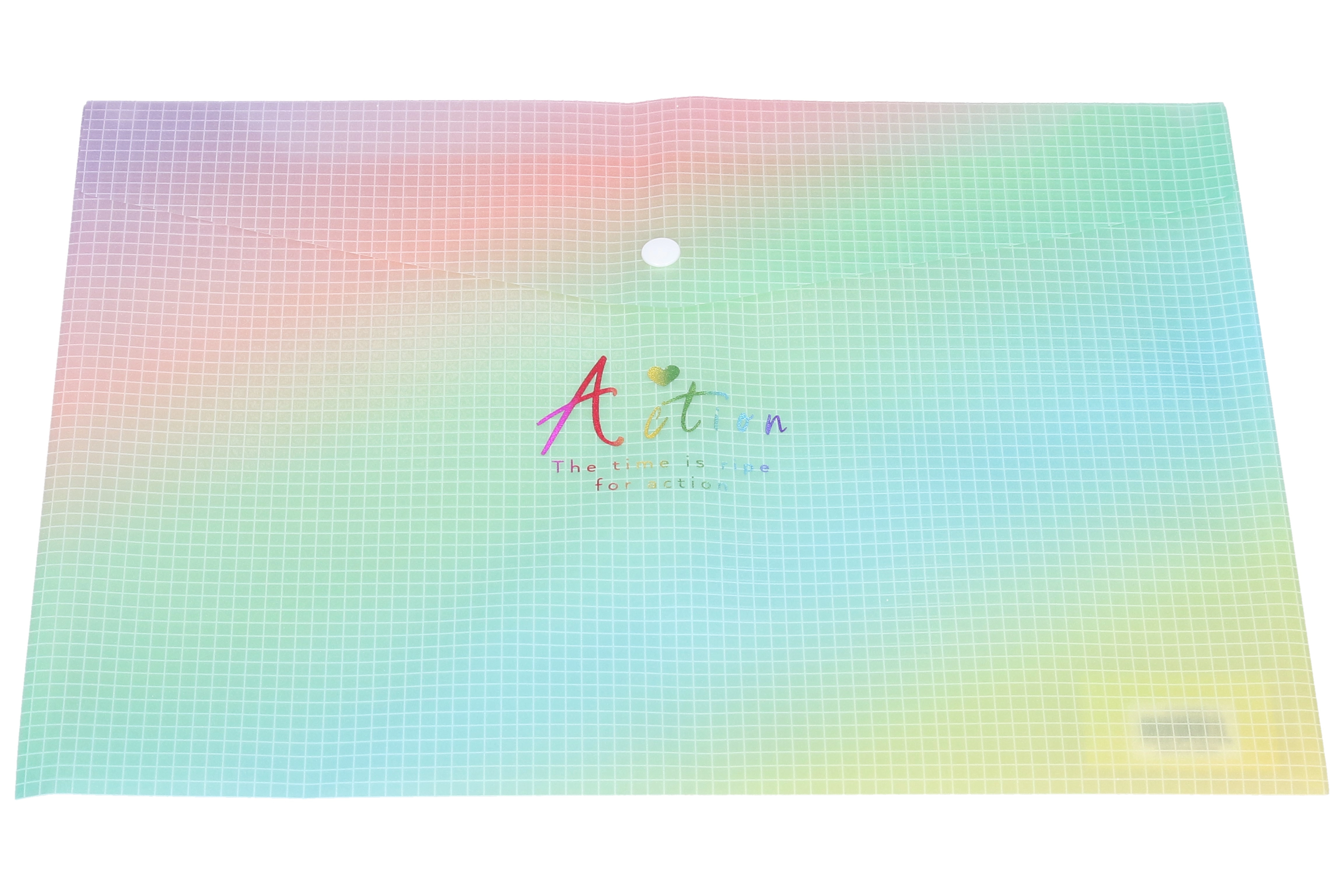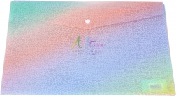 Wybierz spośród kilku atrakcyjnych pastelowych wzorów – kropki, kratka, efekt crackle lub kształty geometryczne. Półprzezroczysty materiał ułatwia identyfikację zawartości, niektóre warianty mają też okienko na etykietę do opisu. Wymiar 33 × 23 cm wygodnie mieści format A4 oraz luźne kartki, zeszyty czy cienkie katalogi.
