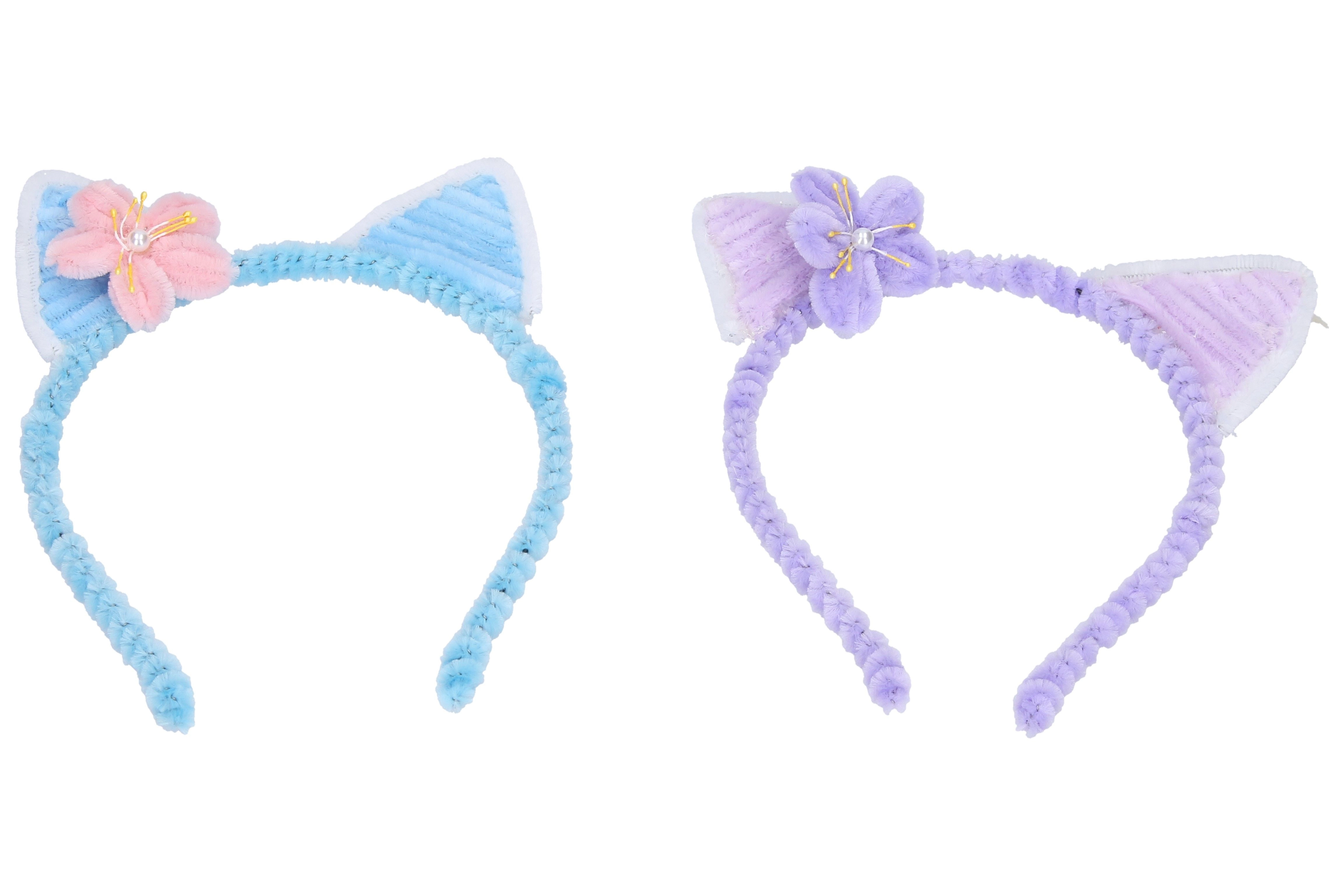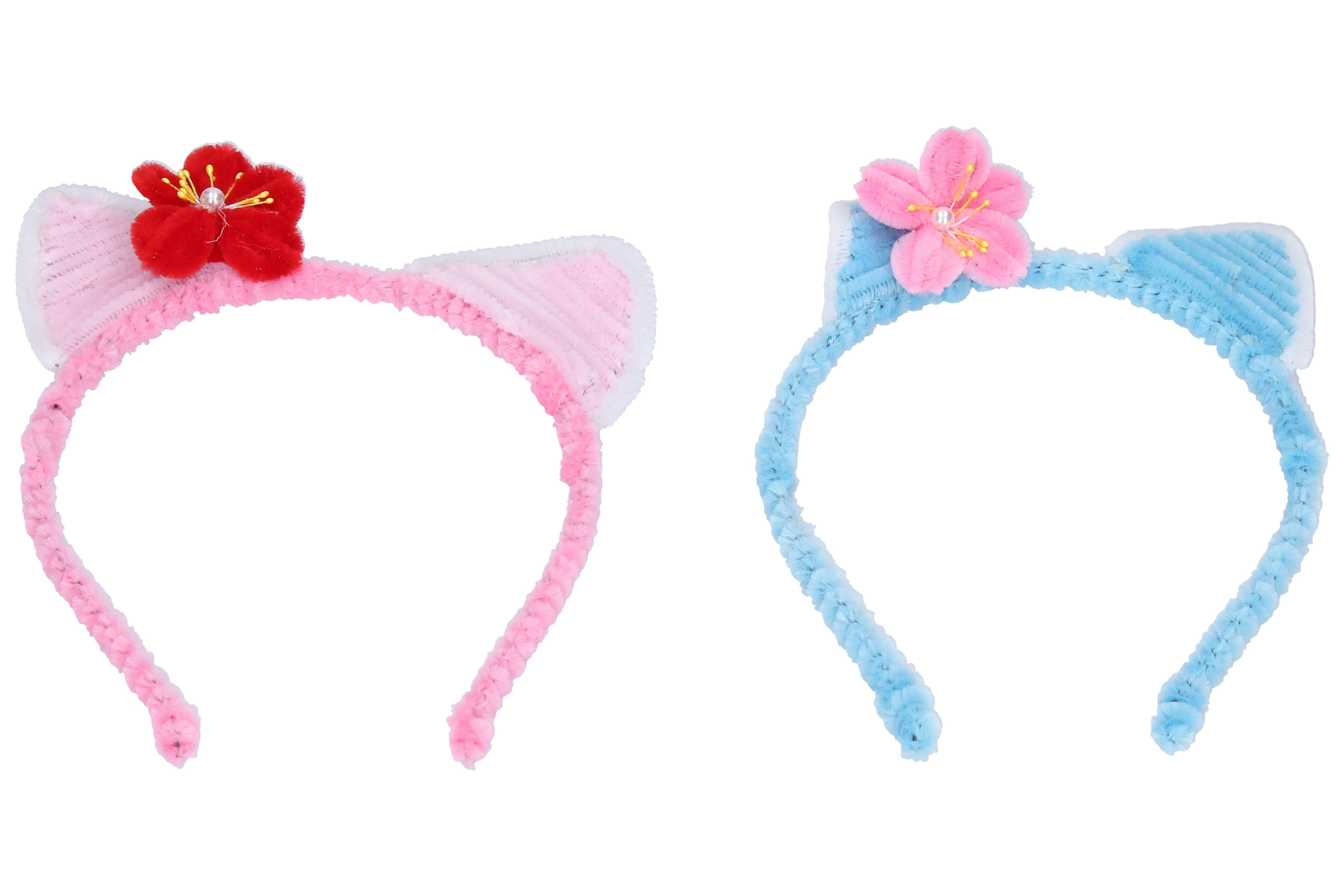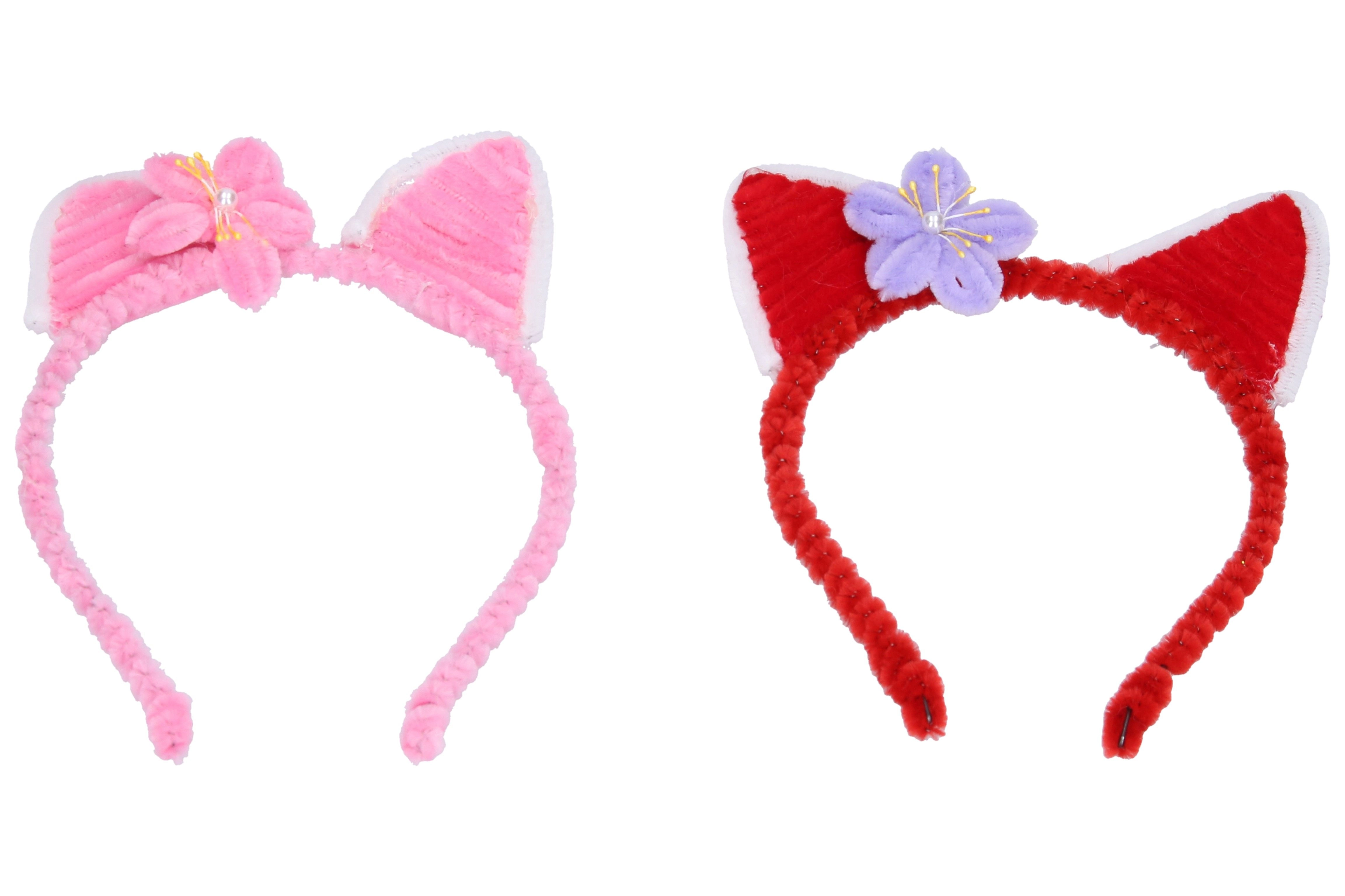 Każda opaska jest uzupełniona subtelną kwiatową ozdobą, która podkreśla figlarny koci wygląd i dodaje stylizacji delikatności.